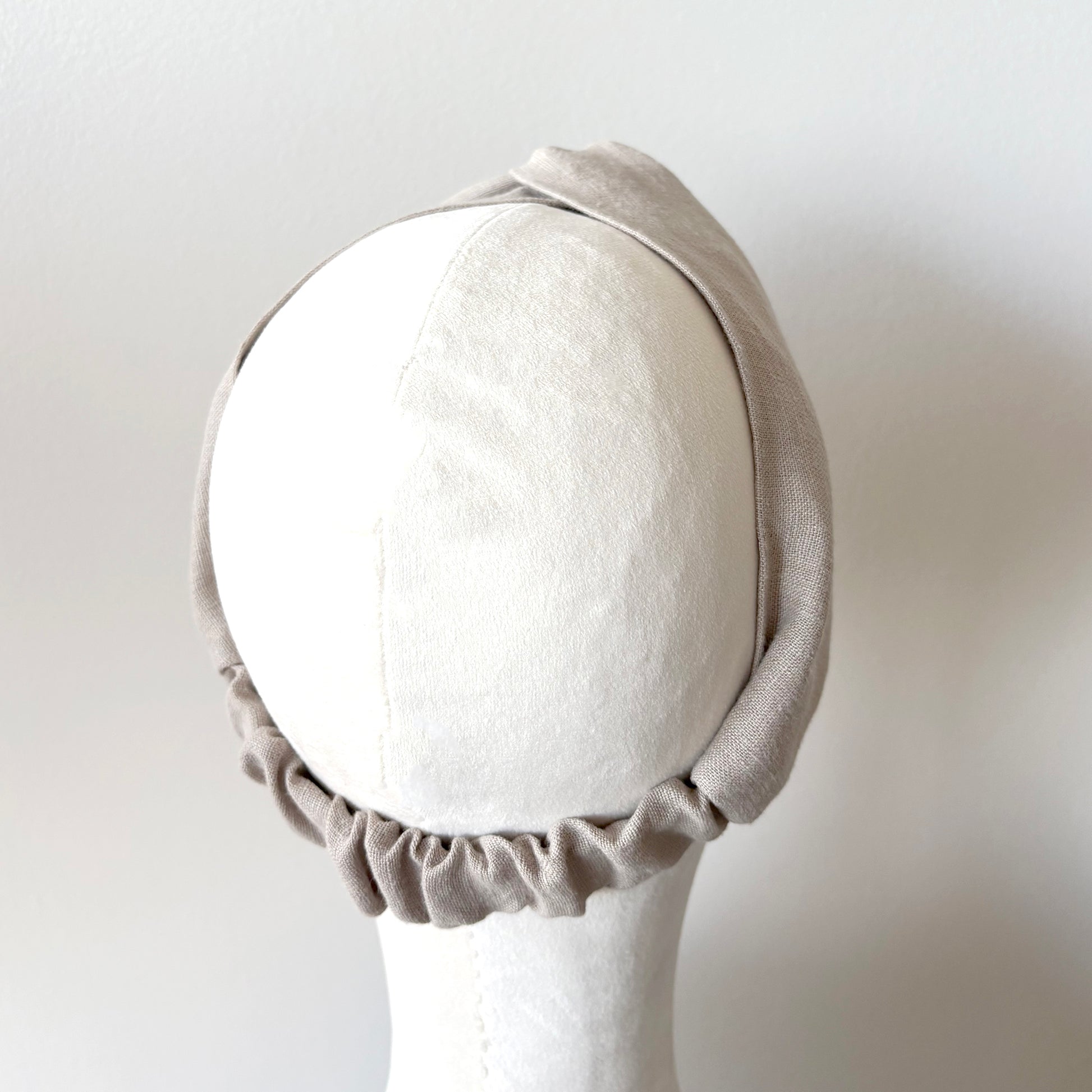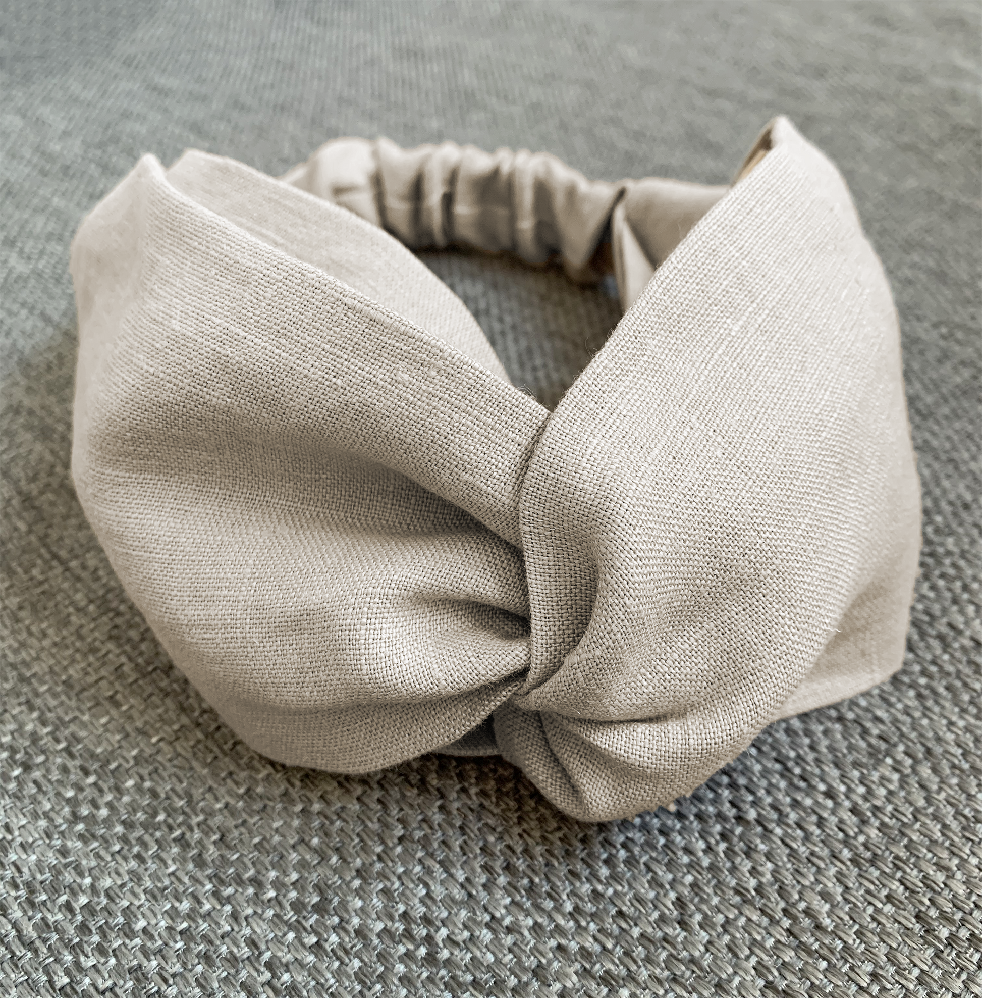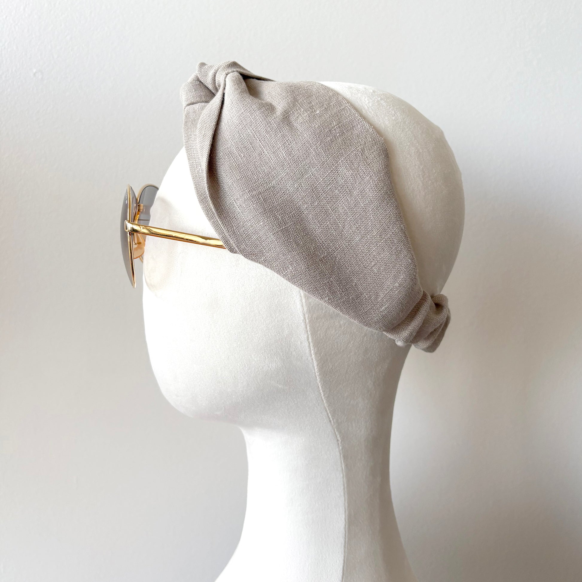 Beige Linen Headband, Twist Top Knot Turban Headband with Elastic