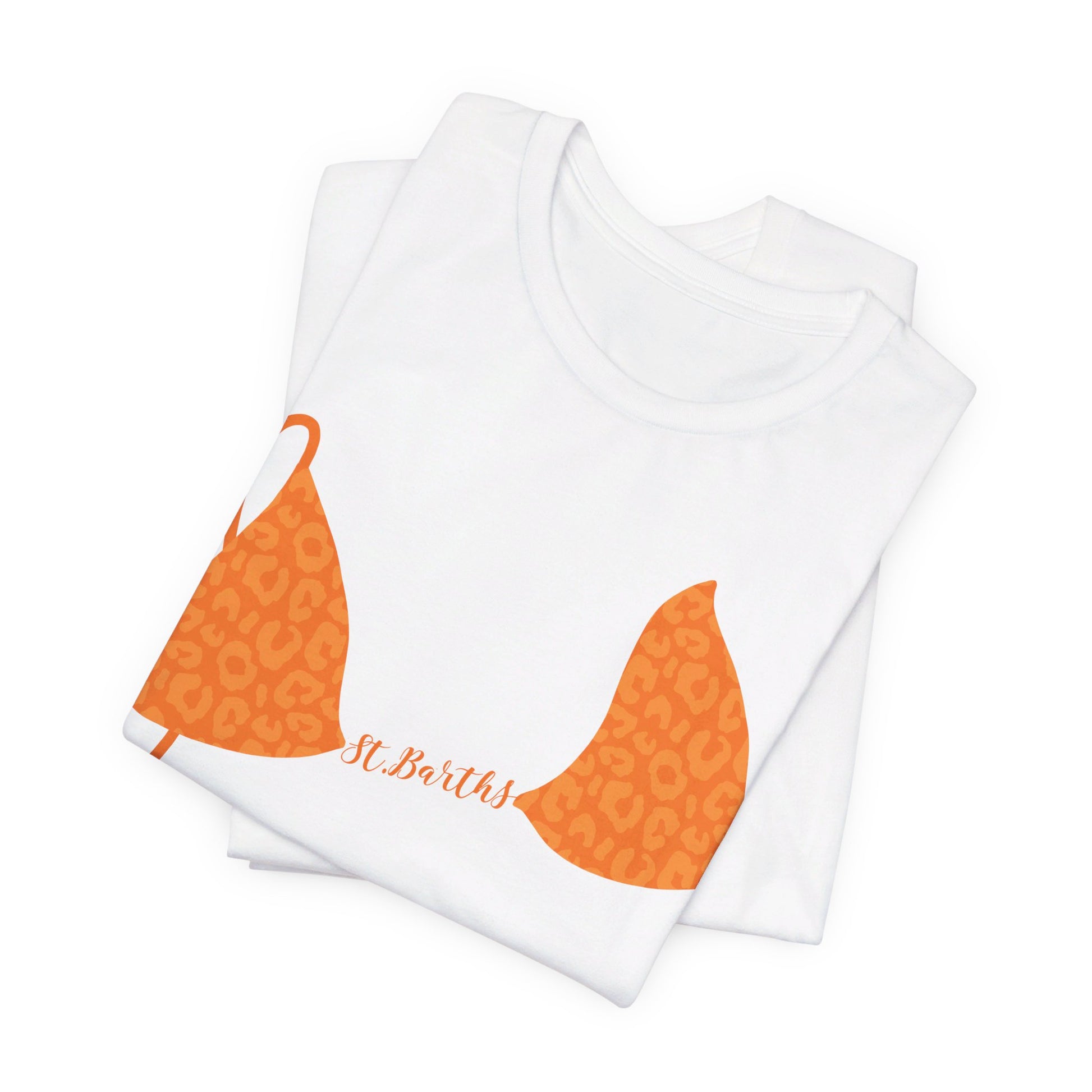 Bikini Top T-Shirt, Orange Leopard Print, Custom Personalized