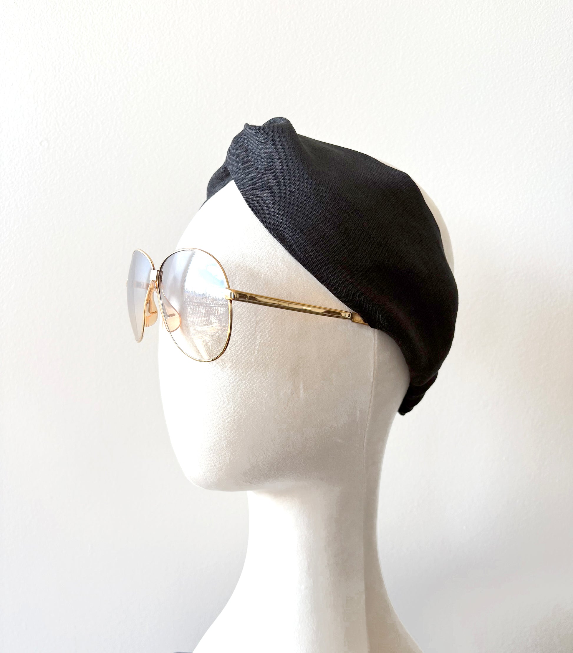 Look stylish and stay comfortable with this Black Linen Headband. Handcrafted in the USA with 100% quality linen, this twist top knot turban headband comes with a secure elastic fit to ensure the perfect fit. Perfect for keeping your hair off of your face, taming wild hair days or adding effortless glamour to your look. This chic, wide turban style headband is the perfect stylish headband for hiding thinning hair or hair loss.