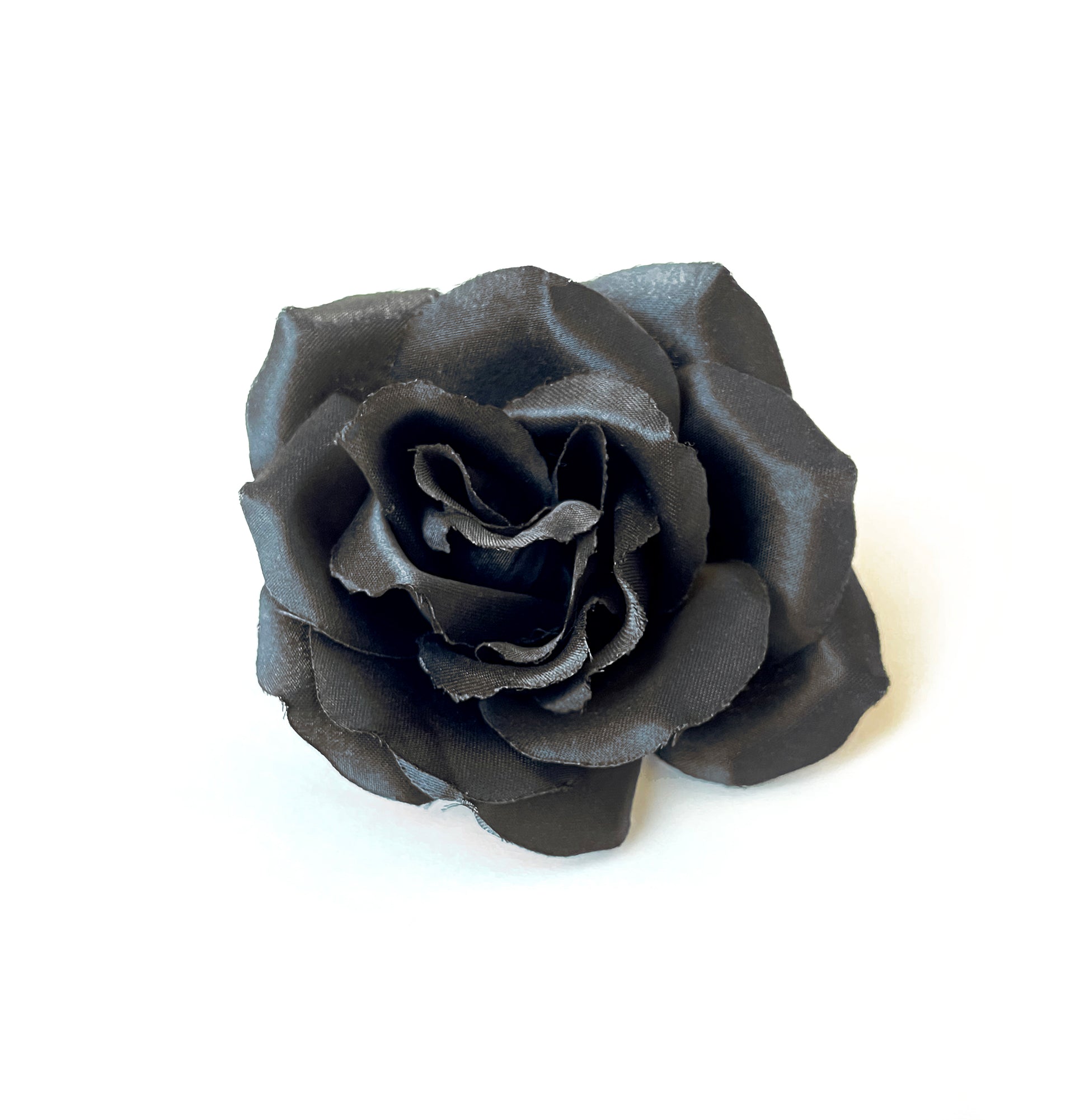 Exude elegance and sophistication with our Black Rose Flower Pin Brooch, a luxurious accessory that adds a beautiful touch to any outfit. Adorn suits, dresses, hats, jackets, and bags with this black silk flower, instantly elevating your style with a unique and dandy appeal. May also be pinned onto hair tie / elastic for a dramatic hair accessory!