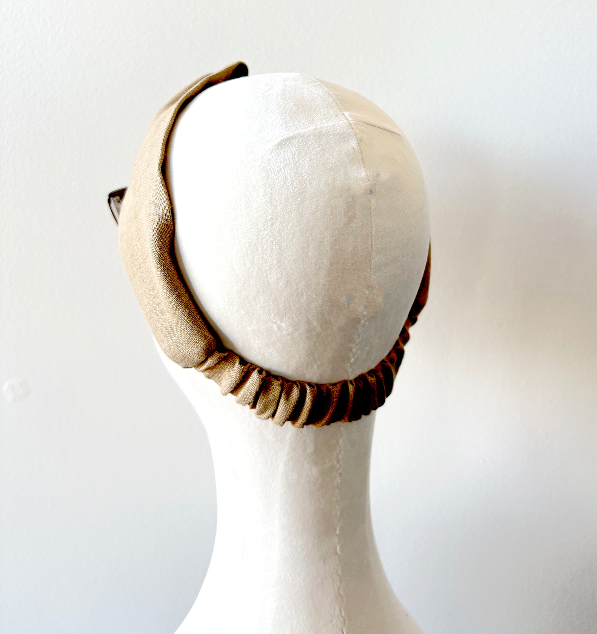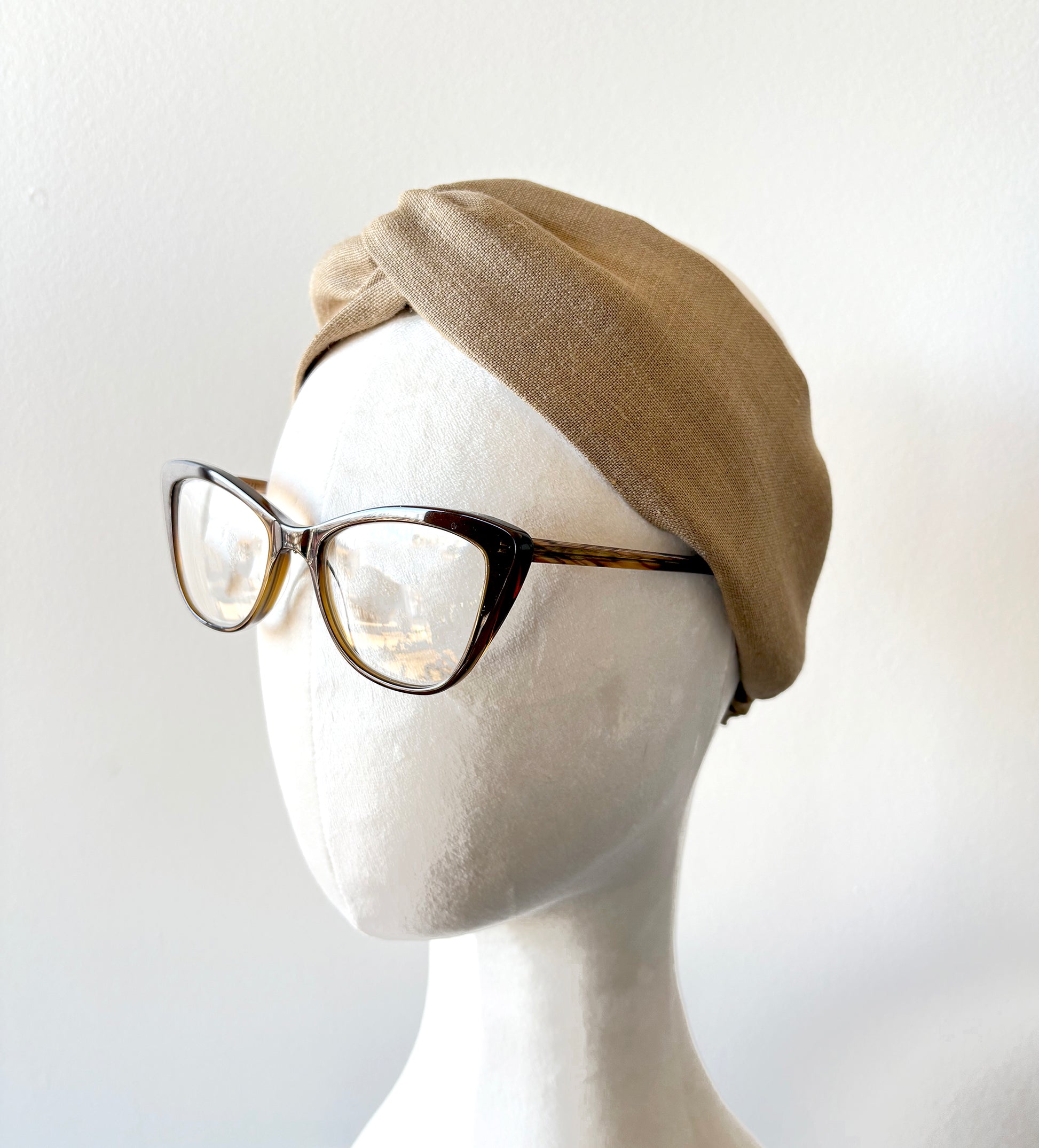 Camel Linen Headband, Turban Top Knot Wide Headband with Elastic