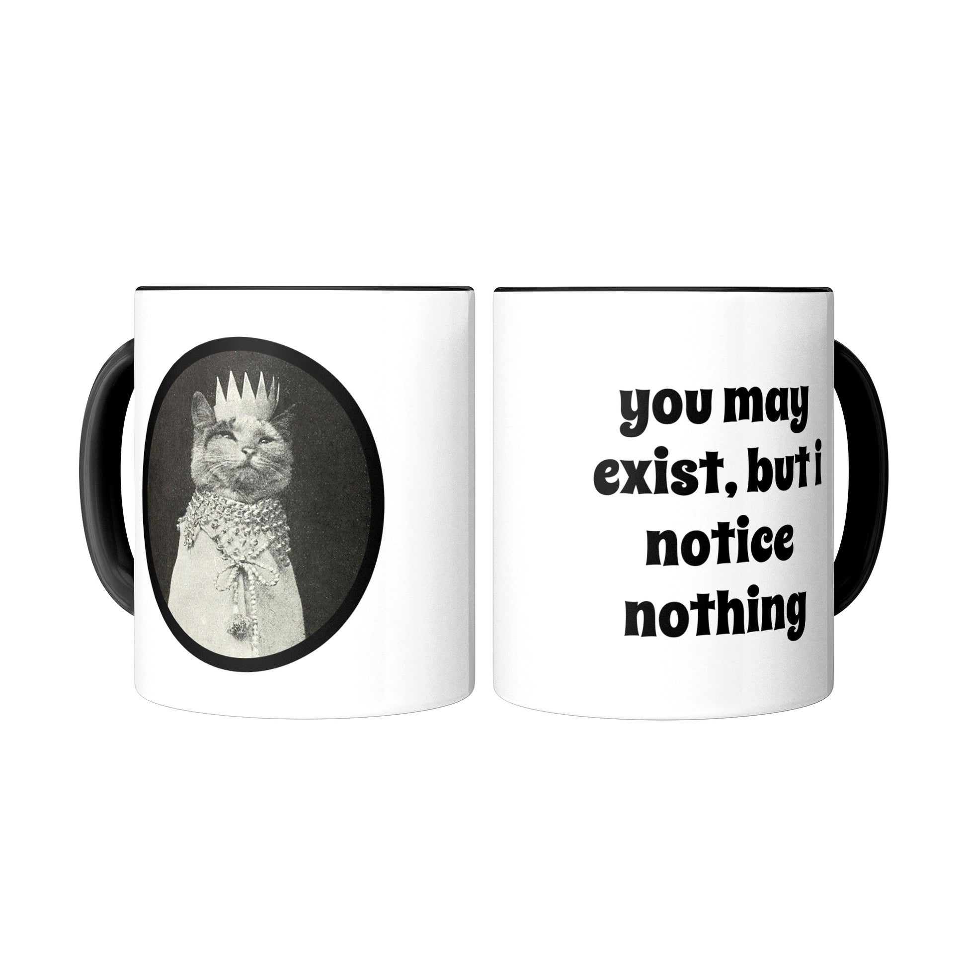 Cattitude Funny Mug - Cat in Queen’s Robe and Crown, “You may exist, but I notice nothing”