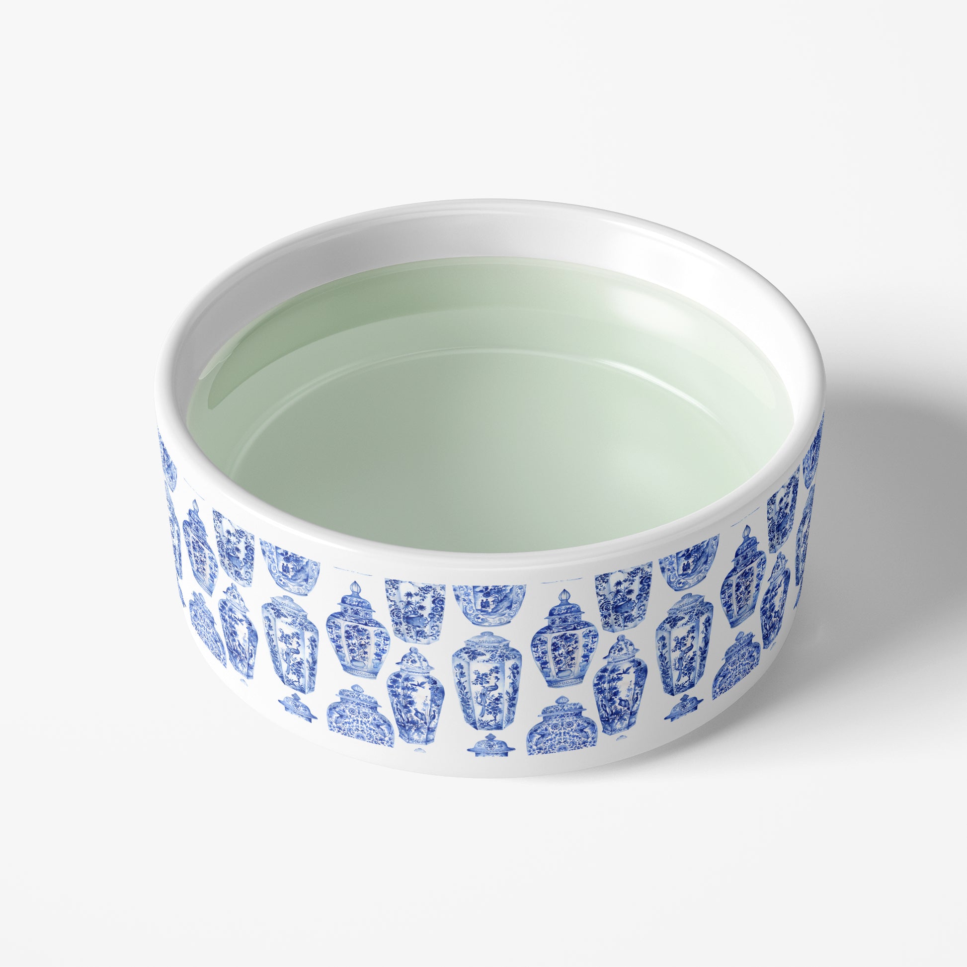 Ginger Jar Pattern Pet Bowl, Ceramic, White & Blue