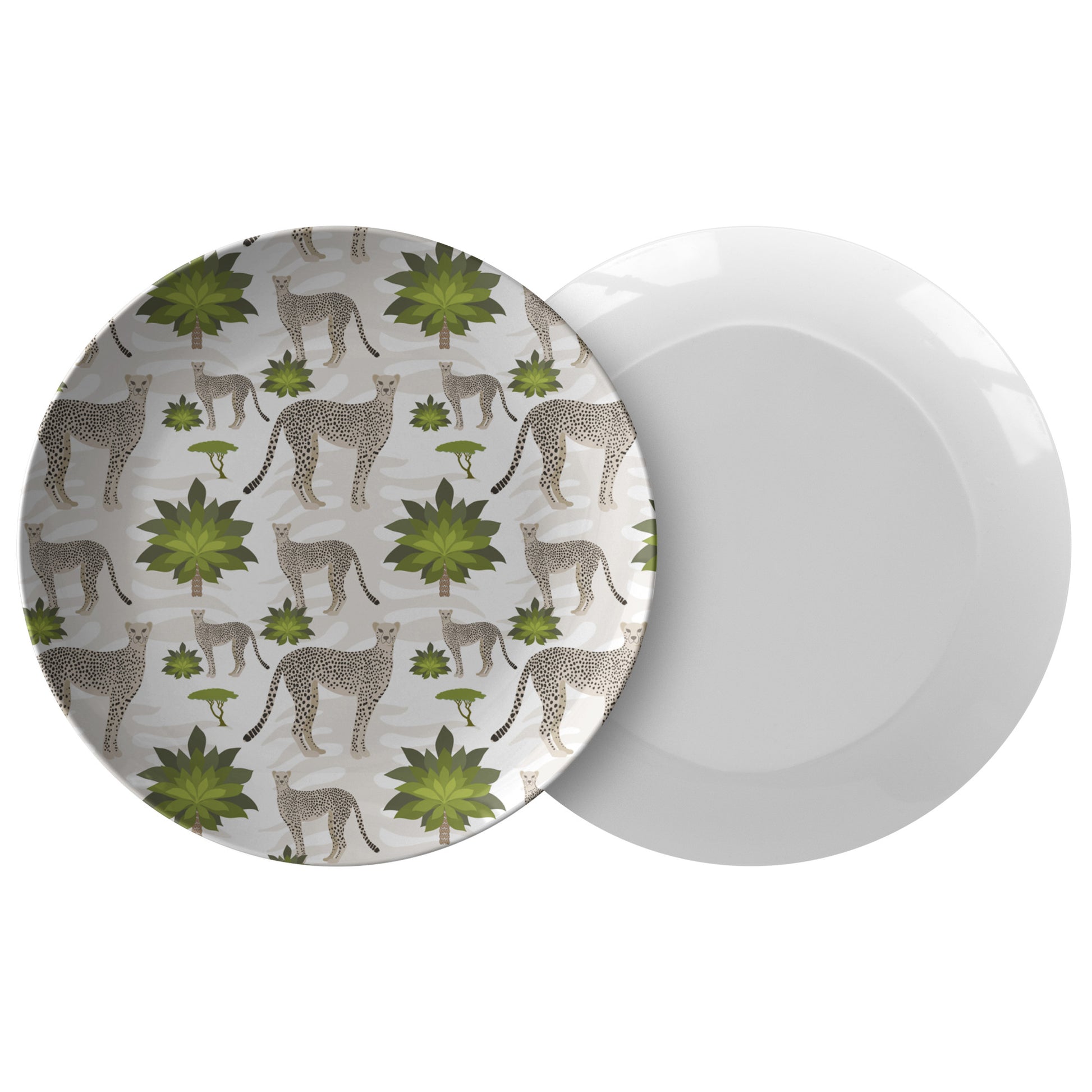 Safari Cheetahs Plate, Green, Luxury Plastic, Choose Single or Set