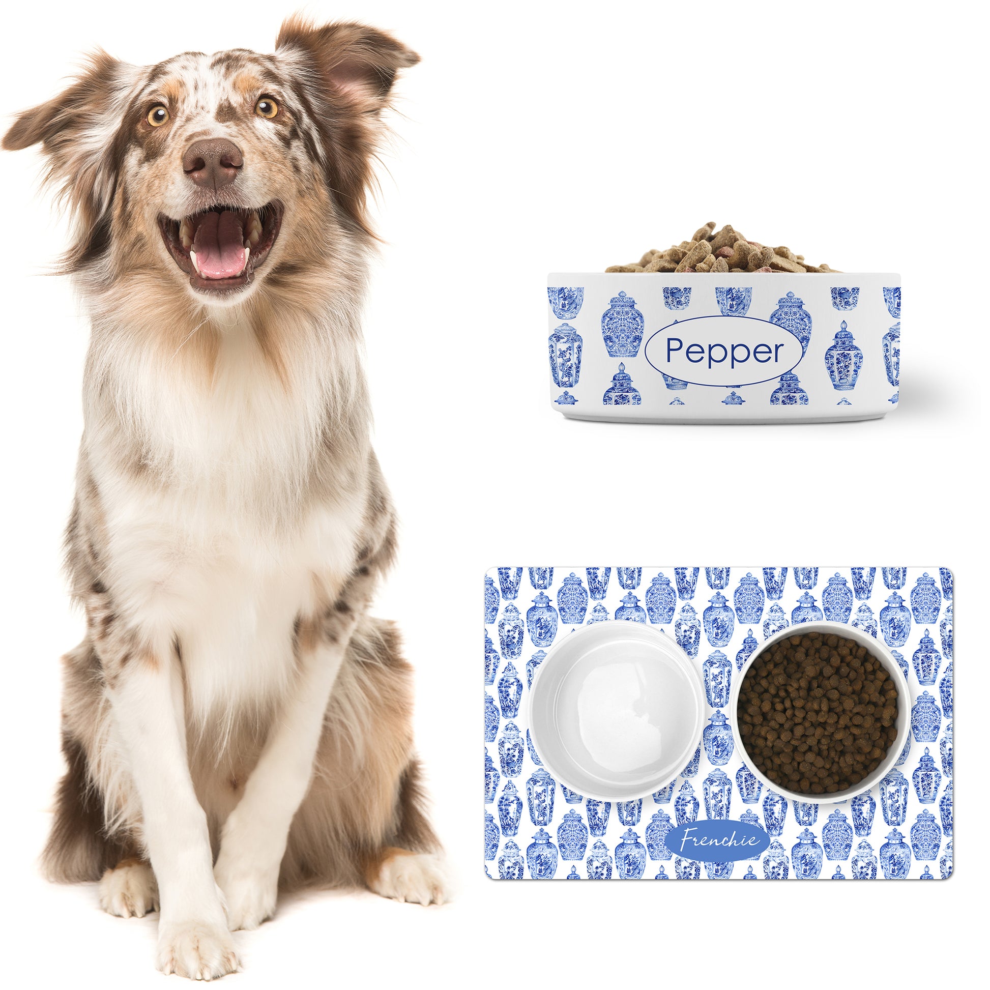 Personalized Pet Food Mat, Chinoiserie Ginger Jars, Blue & White
