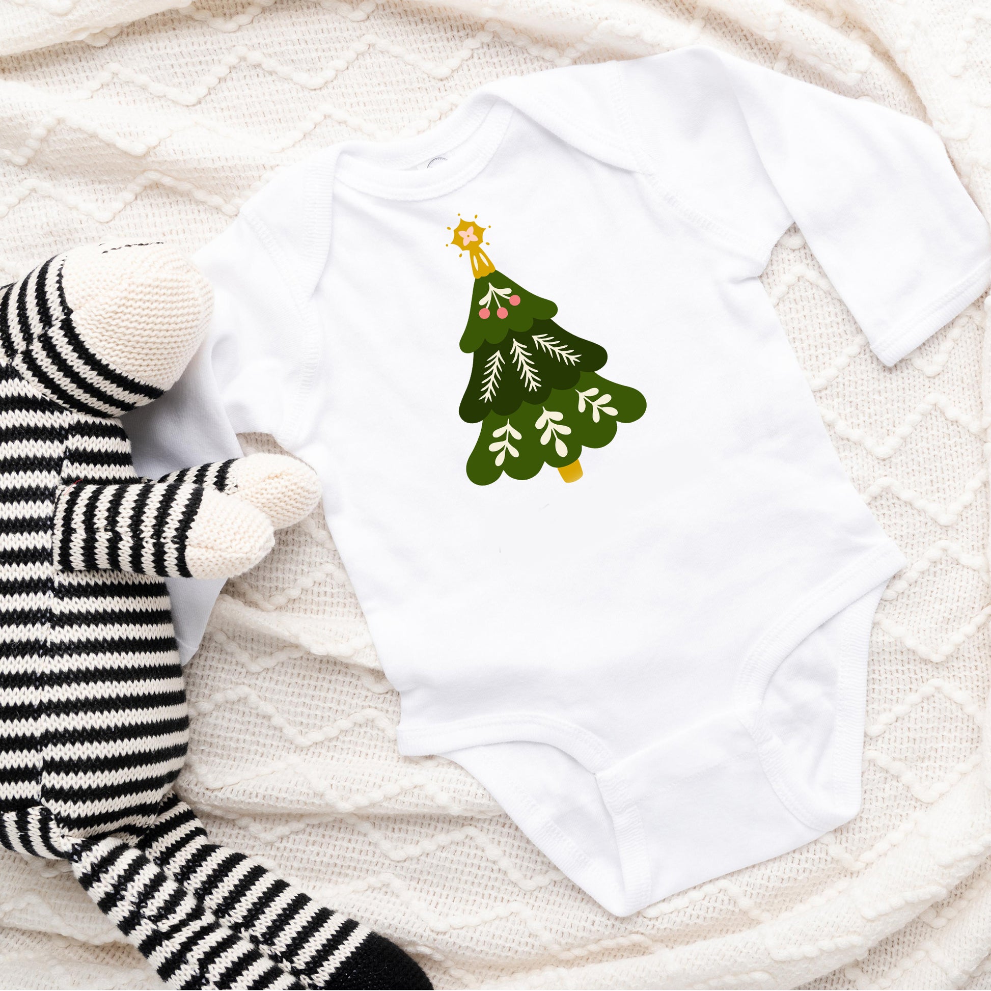 Christmas Tree, Baby One Piece, Long Sleeve, White