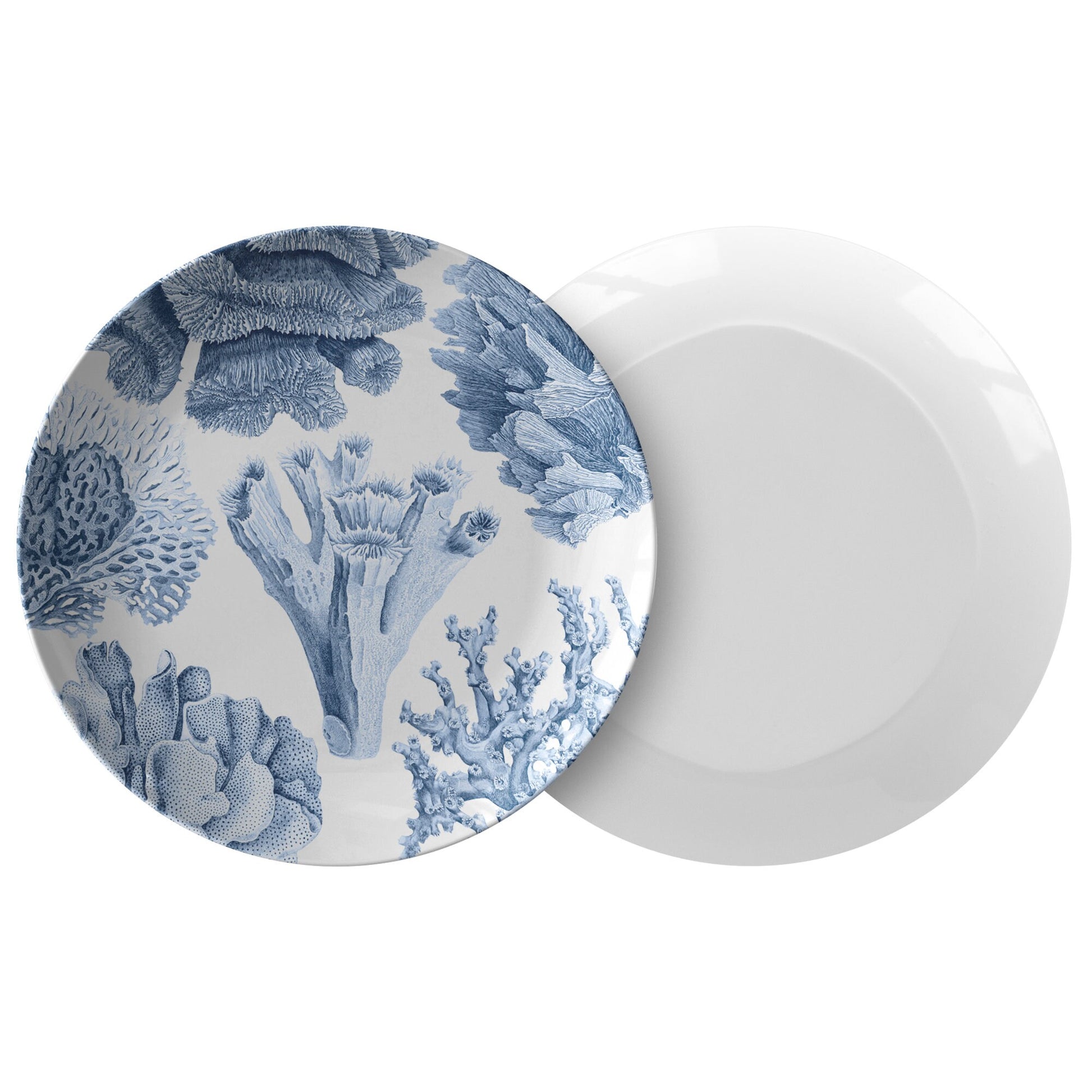 Ocean Coral Plates, Blue and White, Luxury Thermosaf Plastic, Choose Single or Set