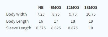 Choose from Newborn, 6 month, 12 month or 18 month size.