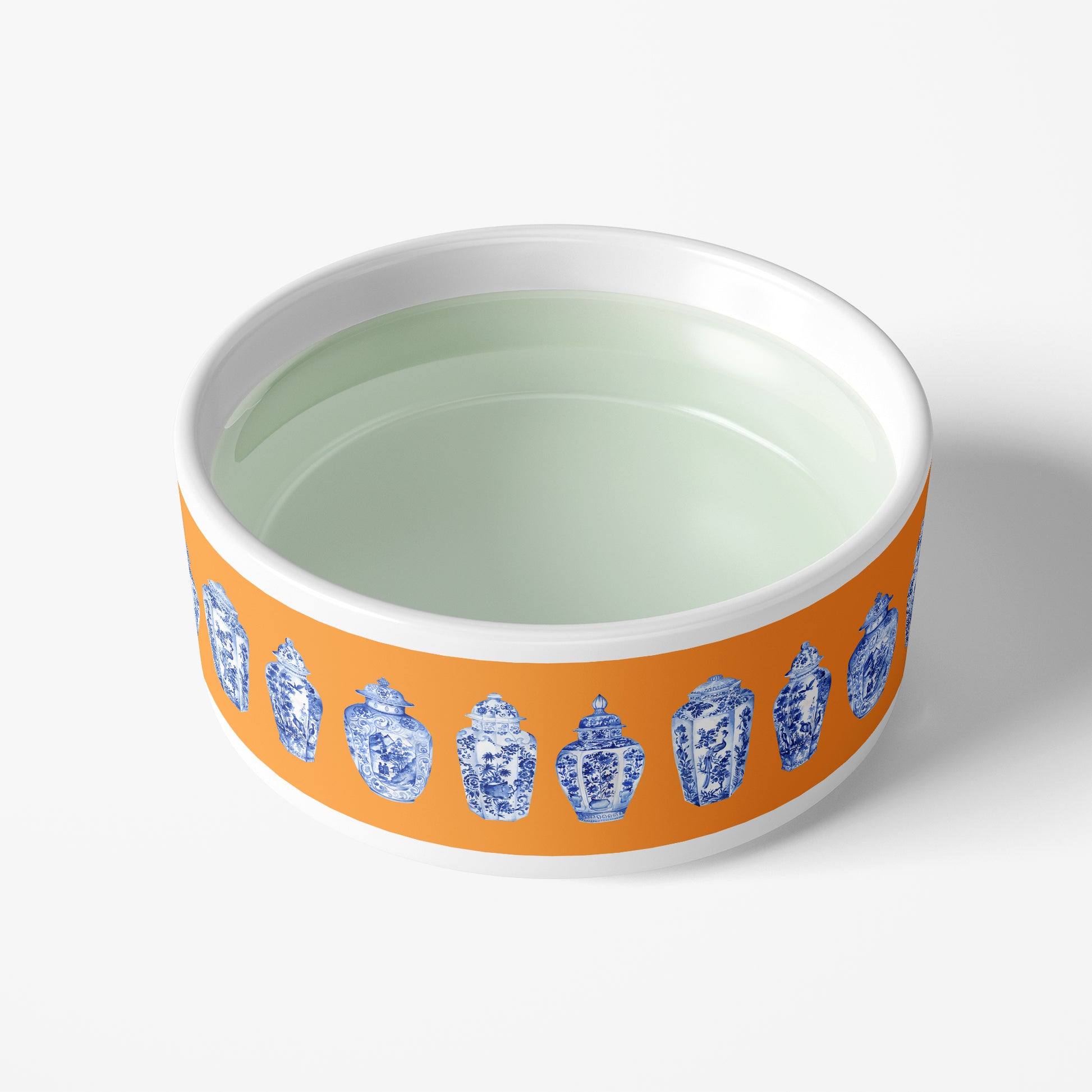 Orange and Blue Ginger Jar print pet bowl - beautiful and luxurious. This food and water bowl is designed to elevate your home decor while pampering your furry friends, combining functionality with modern design.