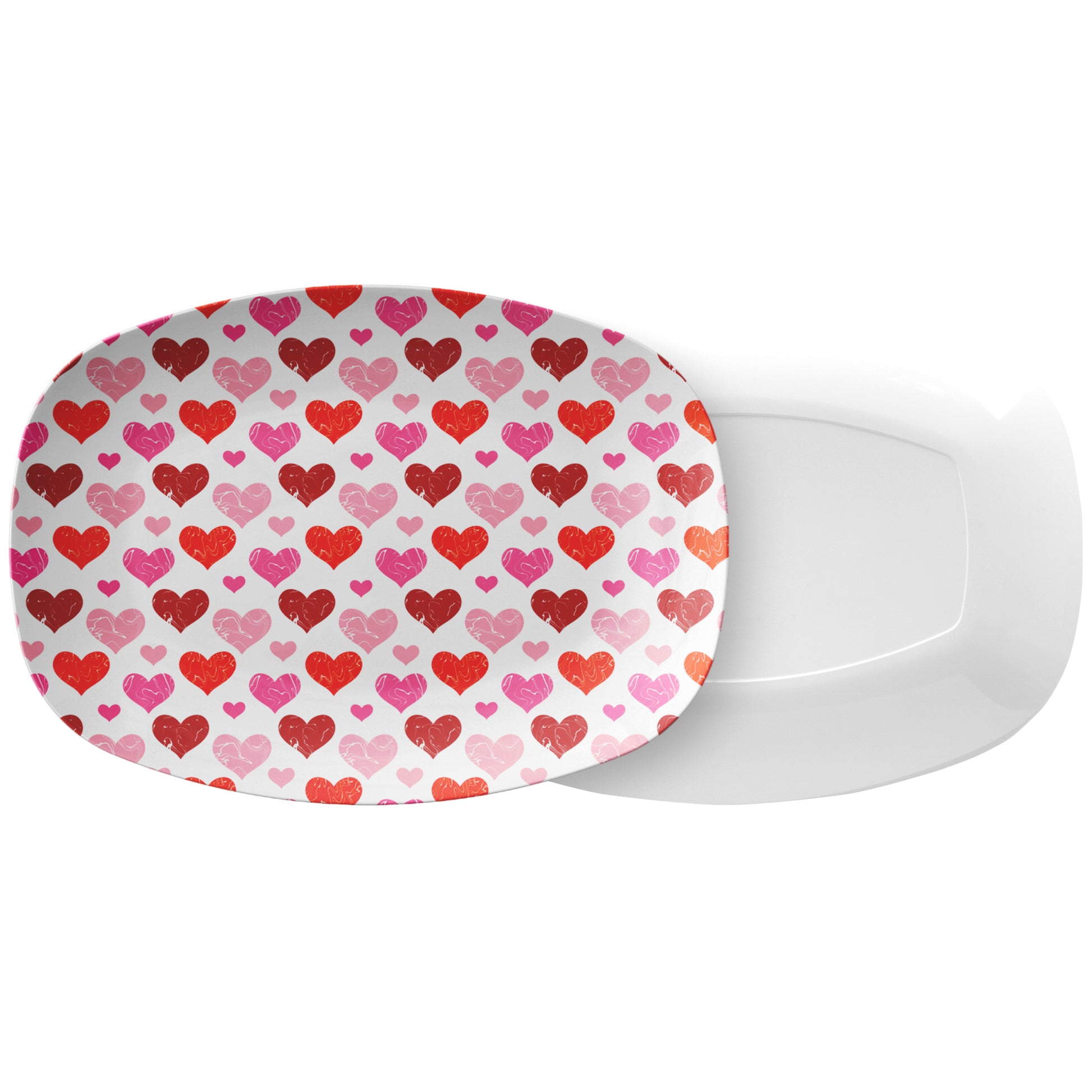 Heart Print Serving Platter with Hand Drawn Hearts, Red/Pink, Luxury Plastic
