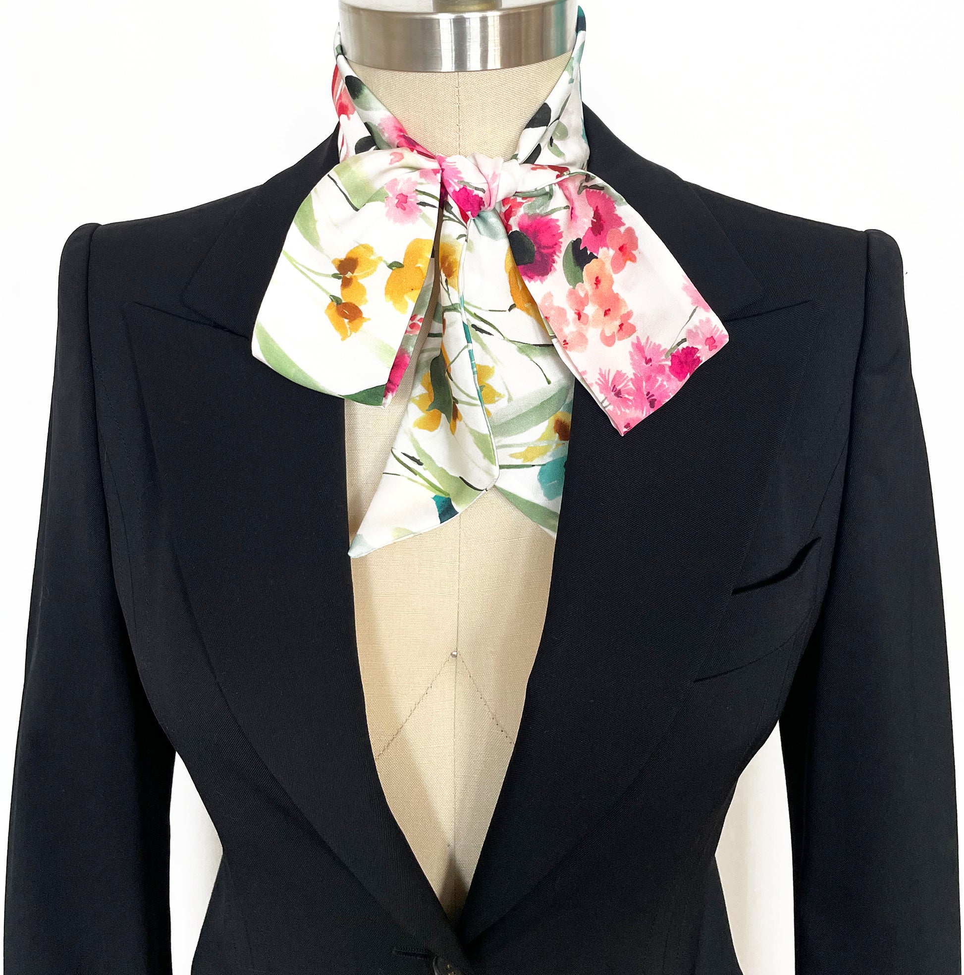 Japanese Floral Print Twilly Scarf, Neck Bow, Neck Tie