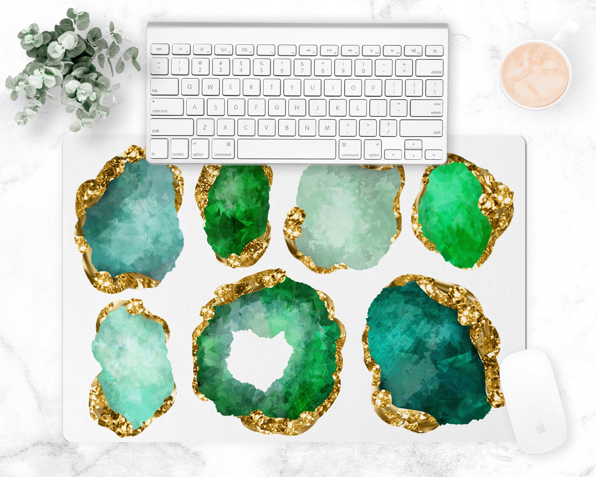 Large Gemstones Counter Mat, Desk Pad, Emerald and Gold