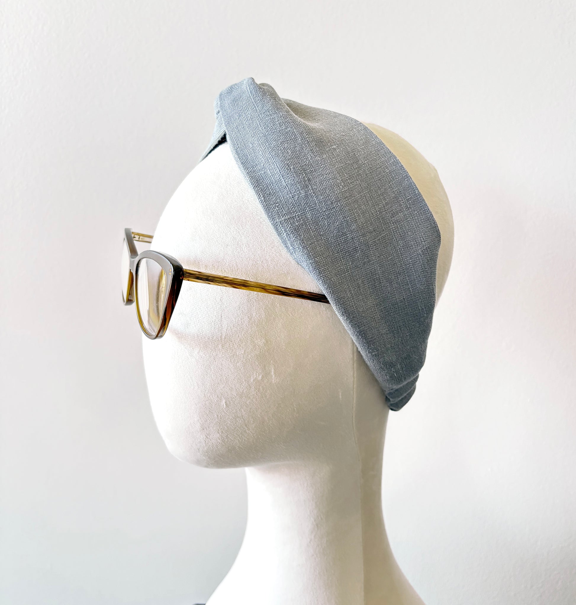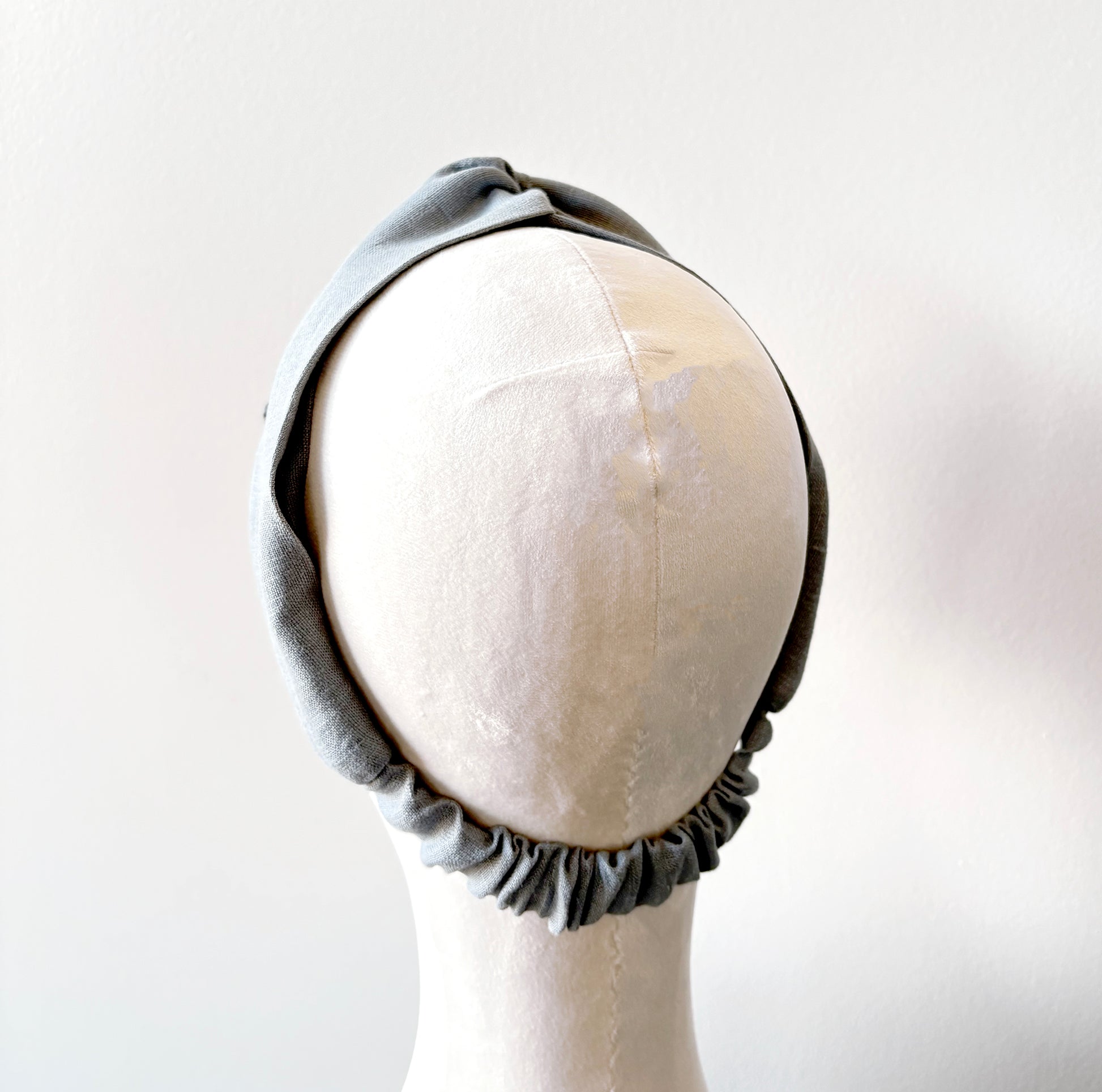 Light Grey Linen Headband, Twist Top Knot Turban Headband with Elastic