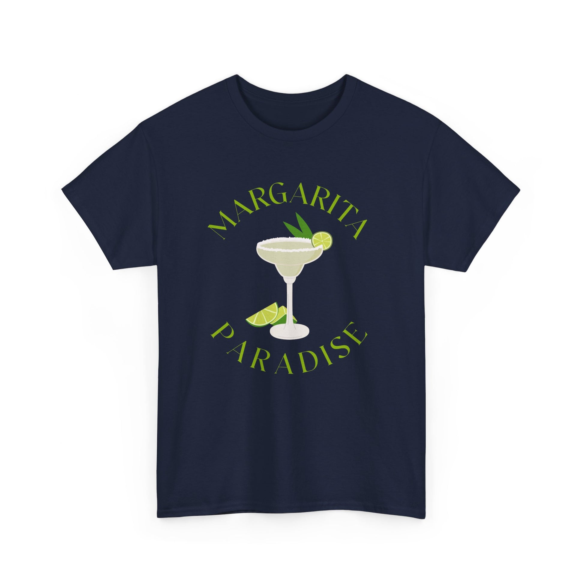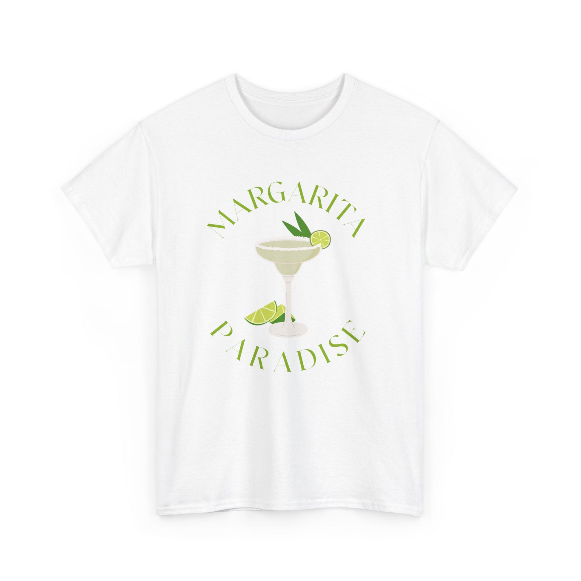 Margarita t-shirt with a cool graphic art print featuring a glam cocktail. Shirt says Margarita Paradise. 100% soft, lightweight cotton crewneck tee.