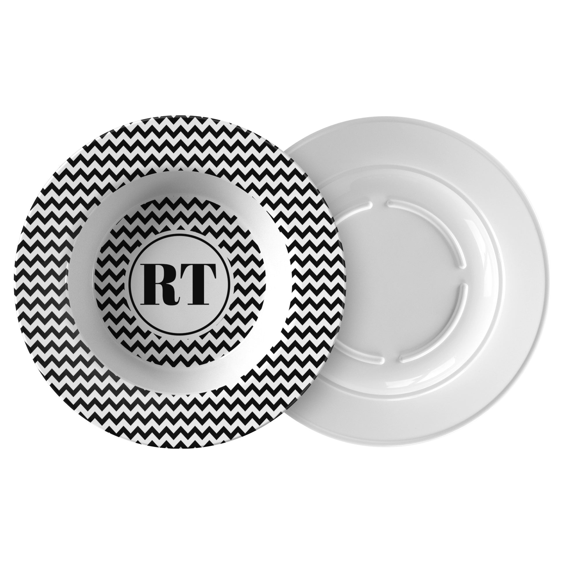 Elevate your dining experience with our Black & White Chevron Stripe Monogram Bowls featuring an eye-catching zig zag stripe pattern and monogram initials. Perfect for adding a chic, custom touch to any gathering, these bowls make a stunning custom gift or a stylish addition to your tableware collection. These wide, shallow stylish bowls featuring up to 3 monogram initials at the center are made for salads, soups, pastas, and more. Made from Thermosaf resin, it's a safer alternative to melamine. Microwave and dishwasher safe for convenience.