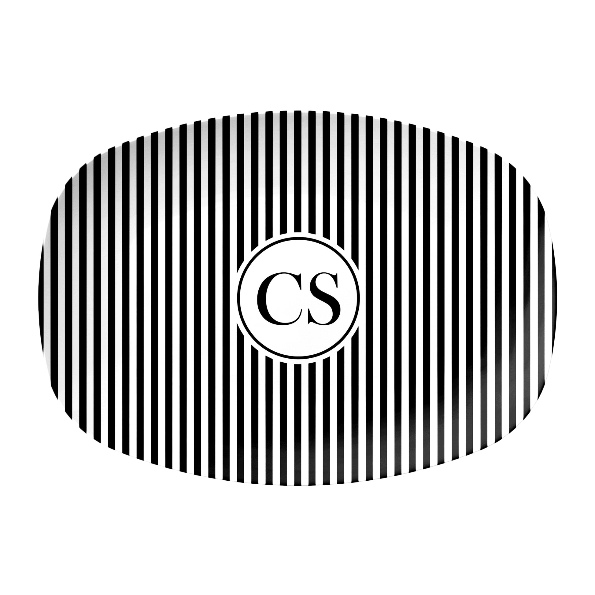 Monogrammed Serving Platter, Black & White Stripes, Personalized Gift, Luxury Plastic