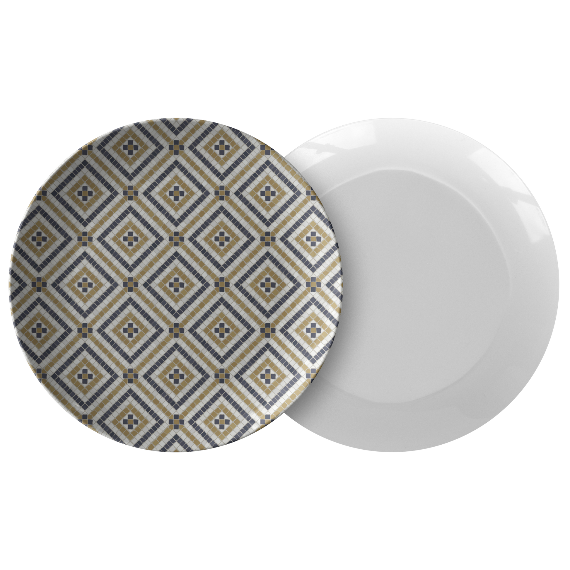 Mosaic Bistro Tile Print Plate, Diamond Pattern, 10" Luxe Plastic