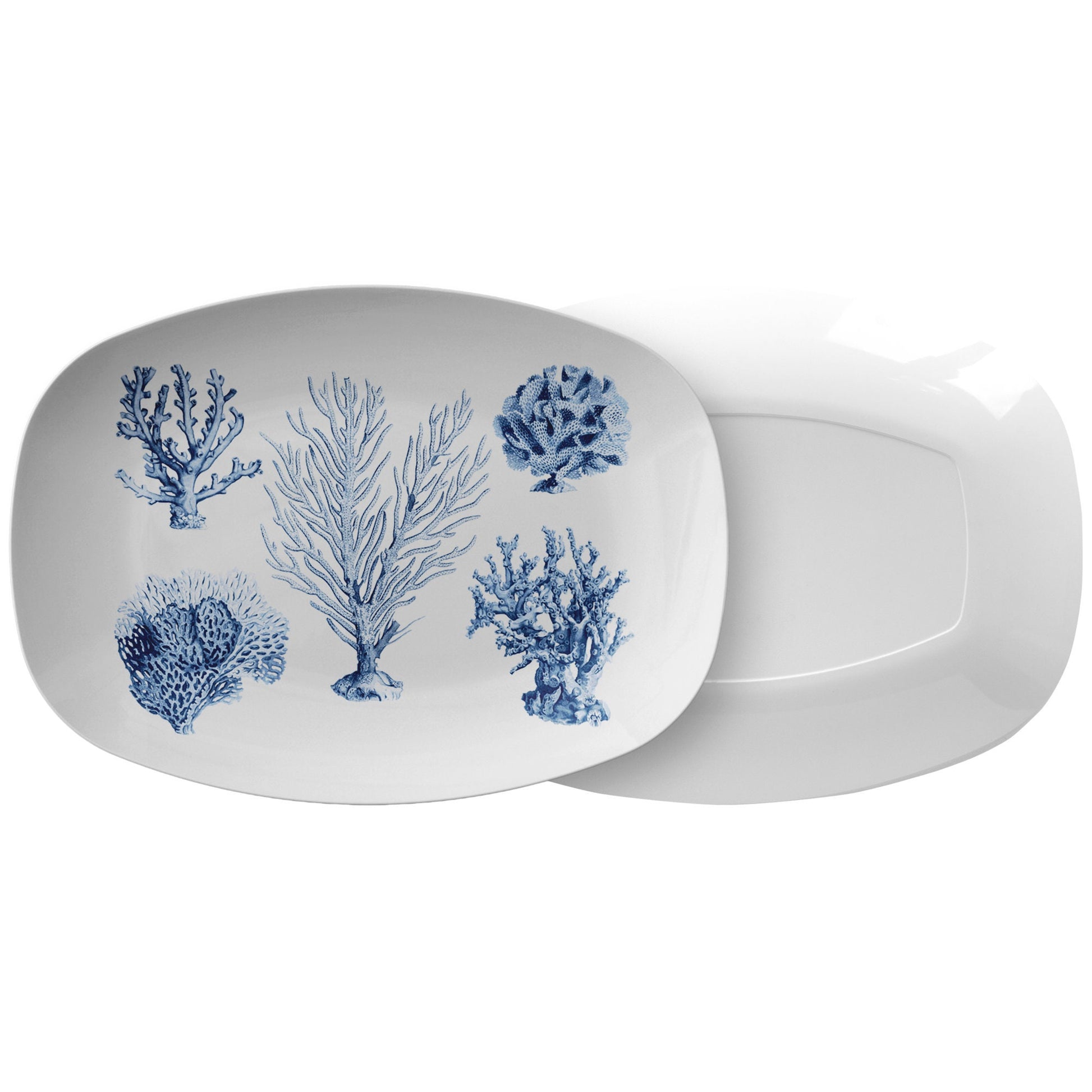 Ocean Coral Serving Platter, Blue & White, Luxury Thermosaf Plastic