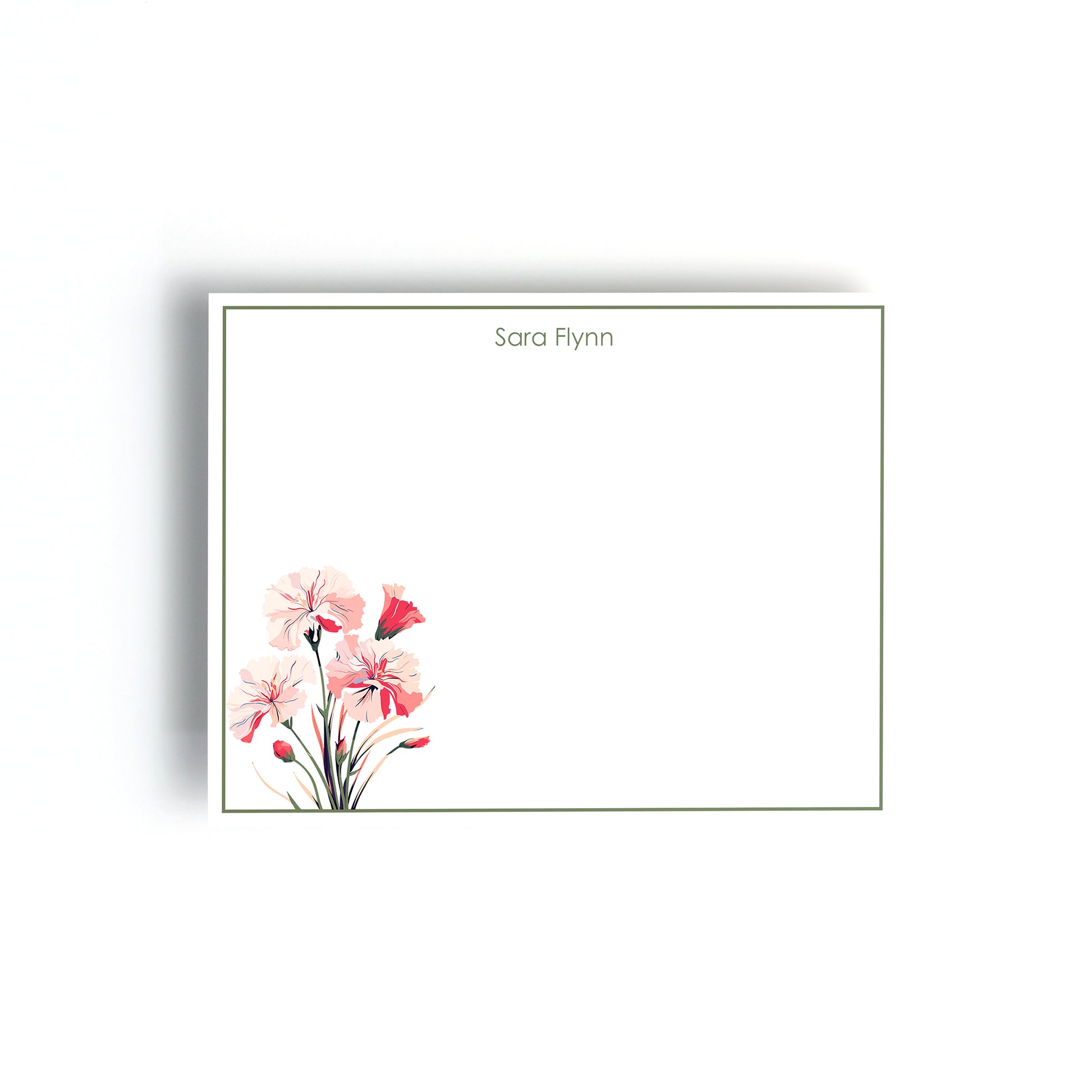 While the Carnation flower carries traditional meaning tied to a January birth month, the design never calls out the month or flower name, making these notecards perfect for birthdays or for anyone who simply loves Pink Carnations. Ideal as a personalized birthday gift, a thoughtful hostess present, or an everyday luxury for sending thank-yous, hellos, and just-because notes.