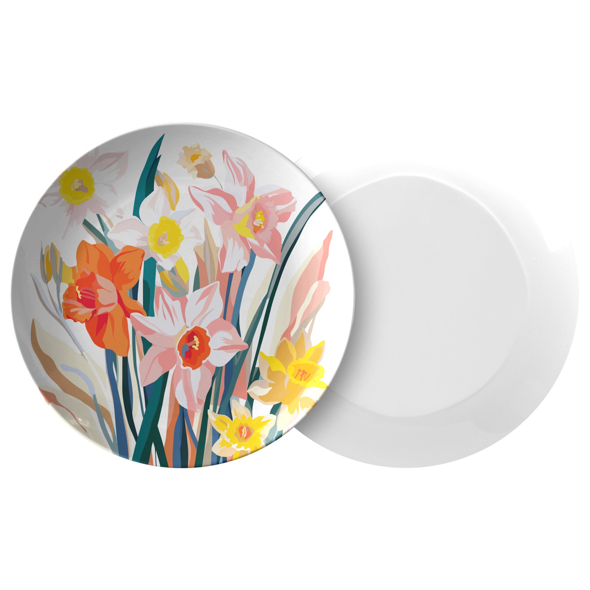 Give a personalized gift that blooms forever. This 10" plate features vibrant, hand-illustrated Daffodils, the birth flower for March, captured in gorgeous colors.