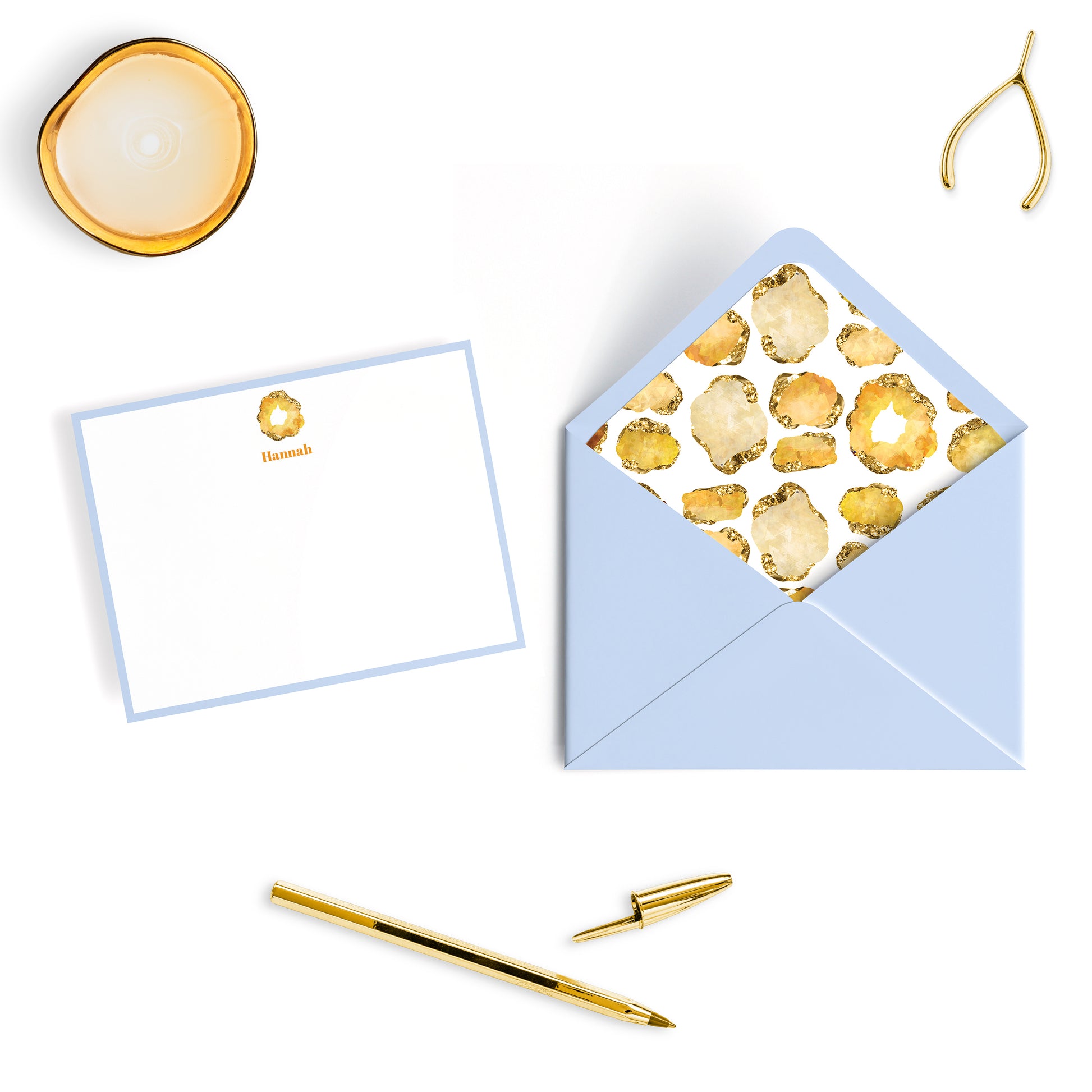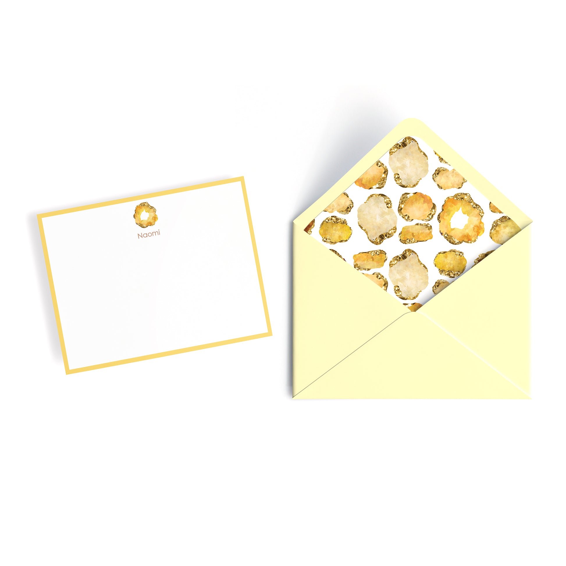 Personalized Gemstone Notecards – Custom Stationery Set, Citrine Geode
