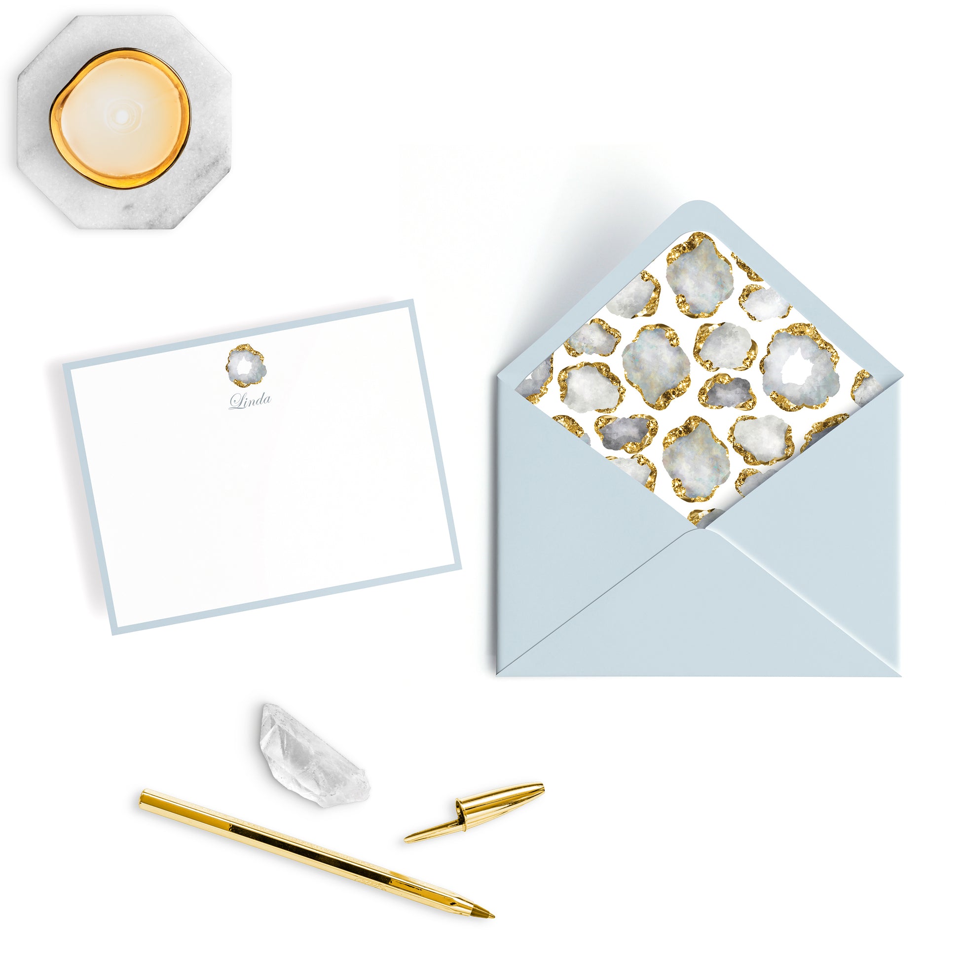 Personalized Gemstone Notecards – Custom Stationery Set, Crystal Geode