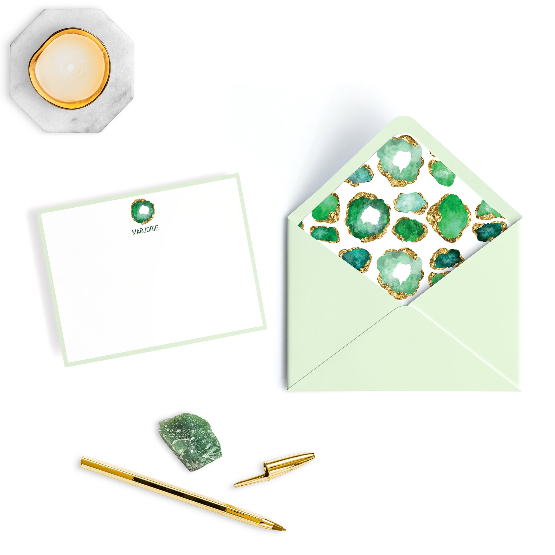 Personalized Gemstone Notecards – Custom Stationery Set, Emerald Geode