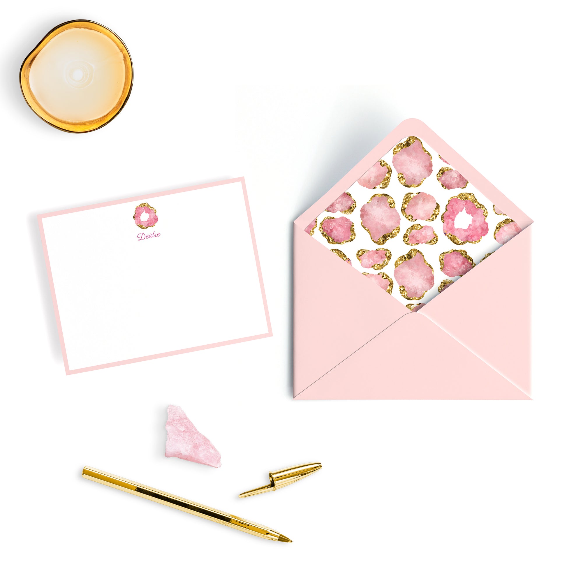 Personalized Gemstone Notecards – Custom Stationery Set, Rose Quartz Geode