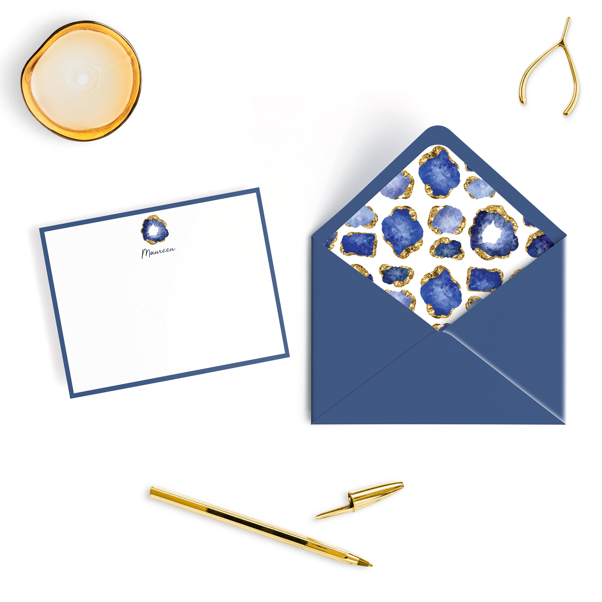 Personalized Gemstone Notecards – Custom Stationery Set, Sapphire Geode