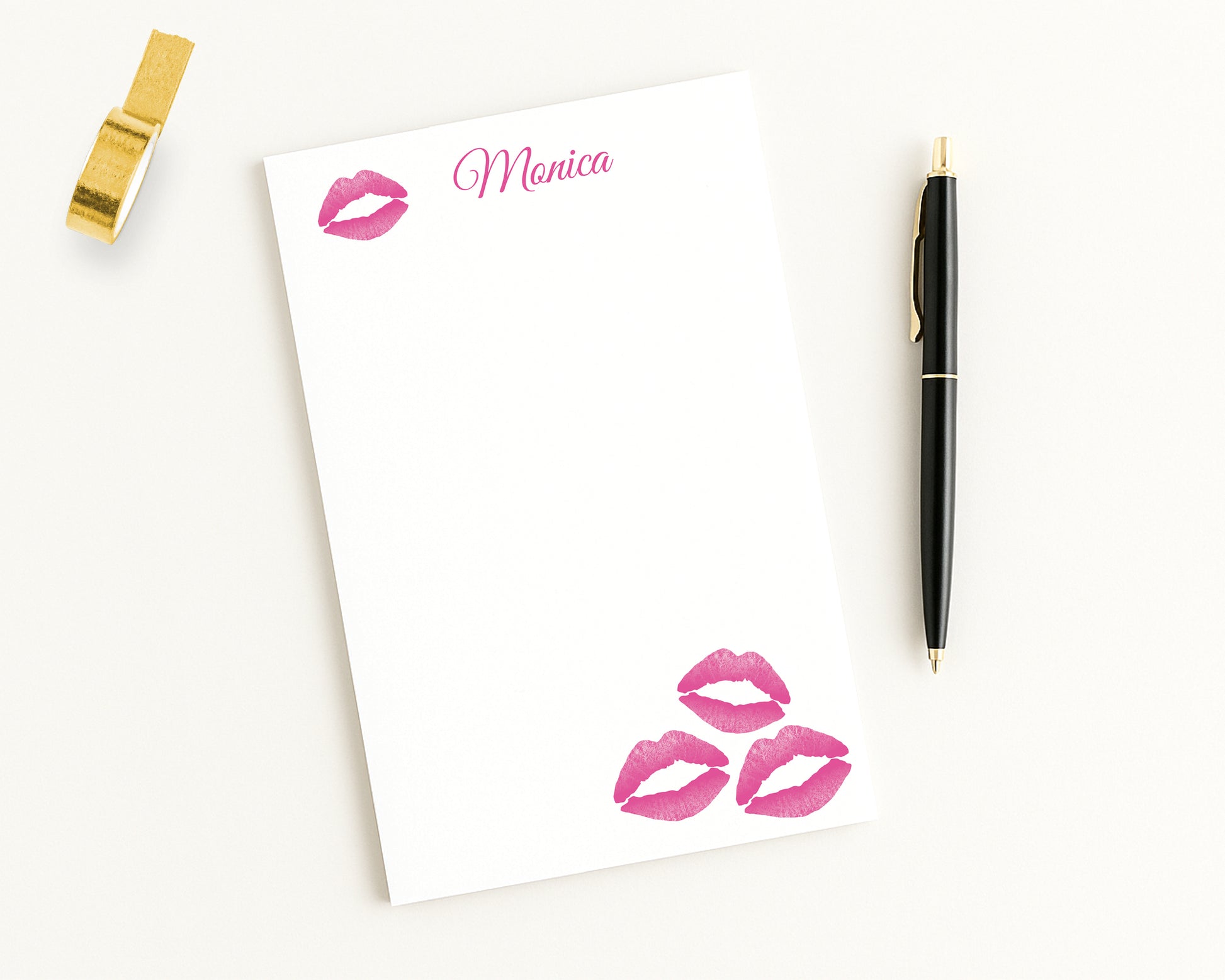 Personalized Lipstick Kiss Print Notepad – Custom Desk Stationery, Hot Pink