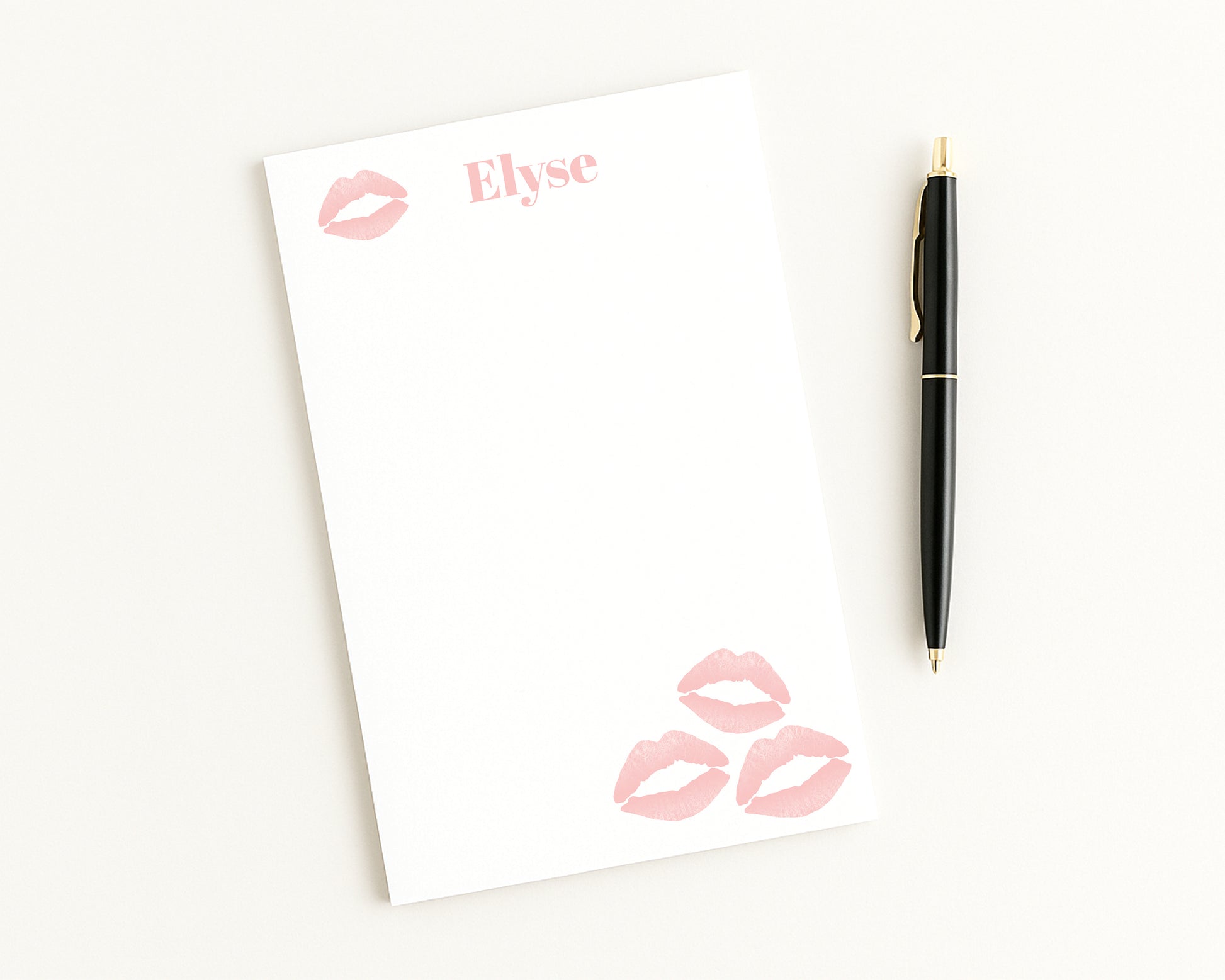 Personalized Lipstick Kiss Print Notepad – Custom Desk Stationery, Light Pink
