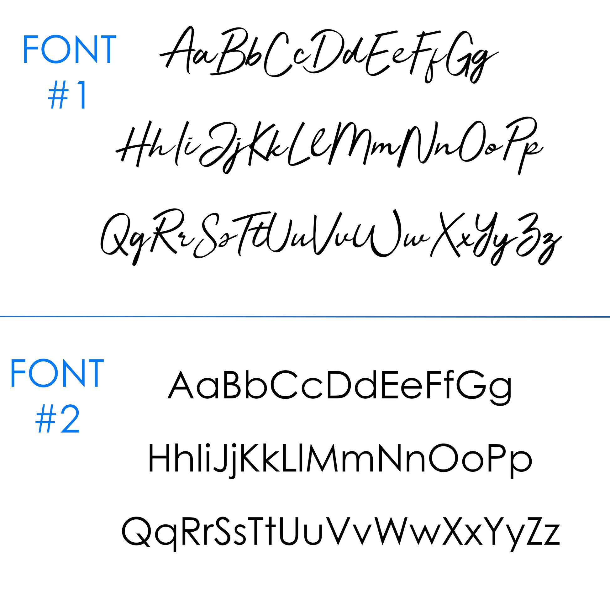 Please view the letter style chart in the photos to choose font style.