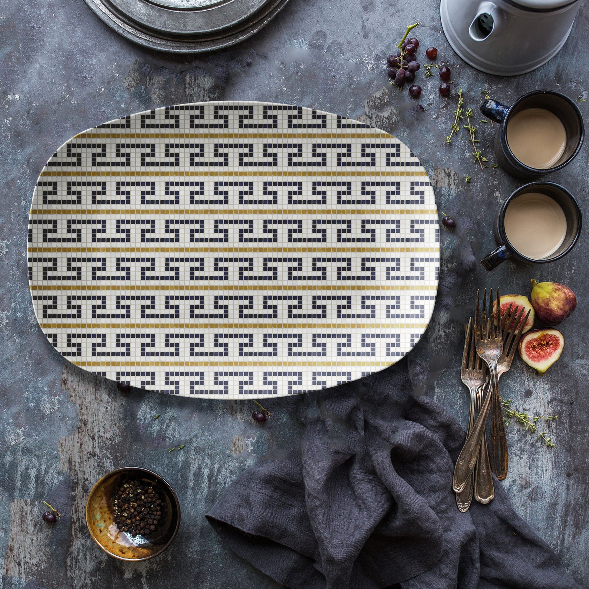 Personalized Mosaic Bistro Tile Serving Platter, Stepped Fret Print, Luxury Plastic