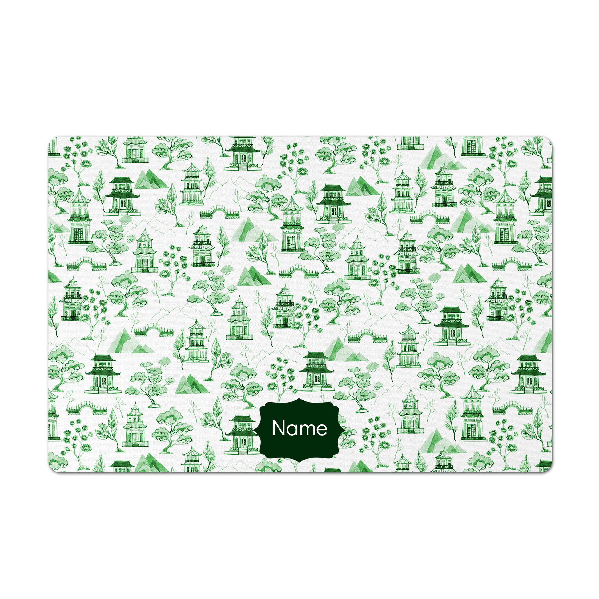 Personalized Pet Bowl Mat, Chinoiserie Toile, Green and White