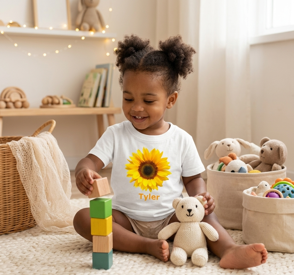 Personalized Sunflower Toddler Kids T-Shirt, Sizes 2T - 5/6T, White