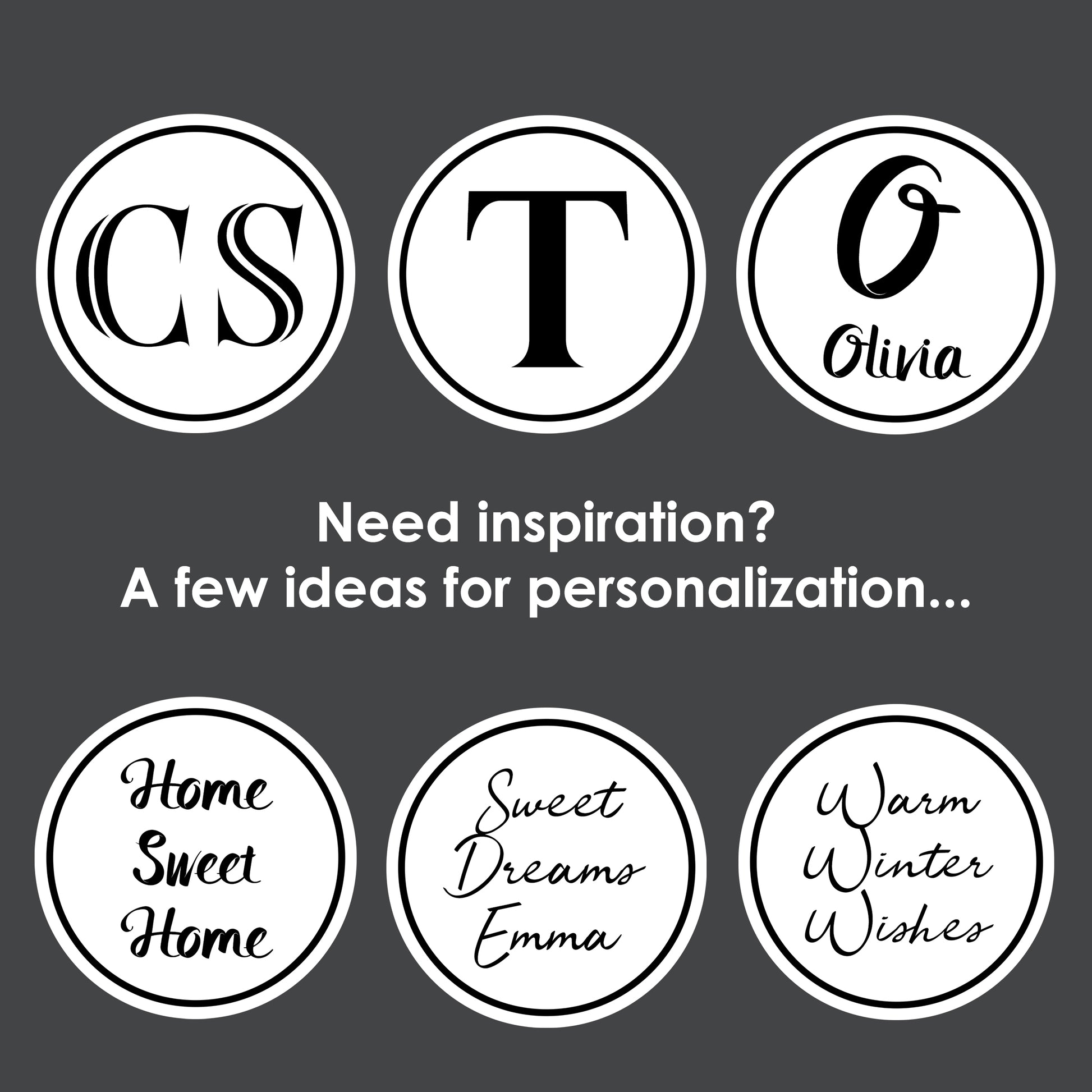 Please enter the name, monogram initials or any words EXACTLY as you want them to appear. IE: Lowercase, uppercase, spaces, and punctuation. Words entered in personalization box will be woven exactly as entered. Max 36 characters including spaces. Example: For one large initial with name enter: O Olivia ~ W Williams