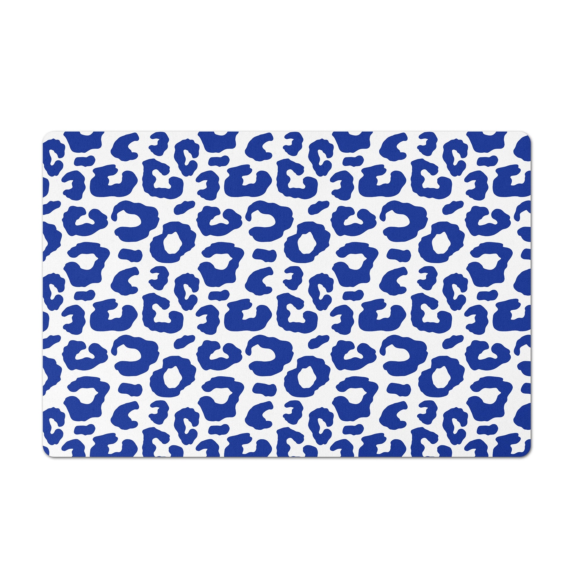 Indigo Navy and White Leopard Print Pet Mat measures 12"h x 18"wide x approximately 1/8"thick. Your pet is the most stylish around, make sure their pet feeding area is too!