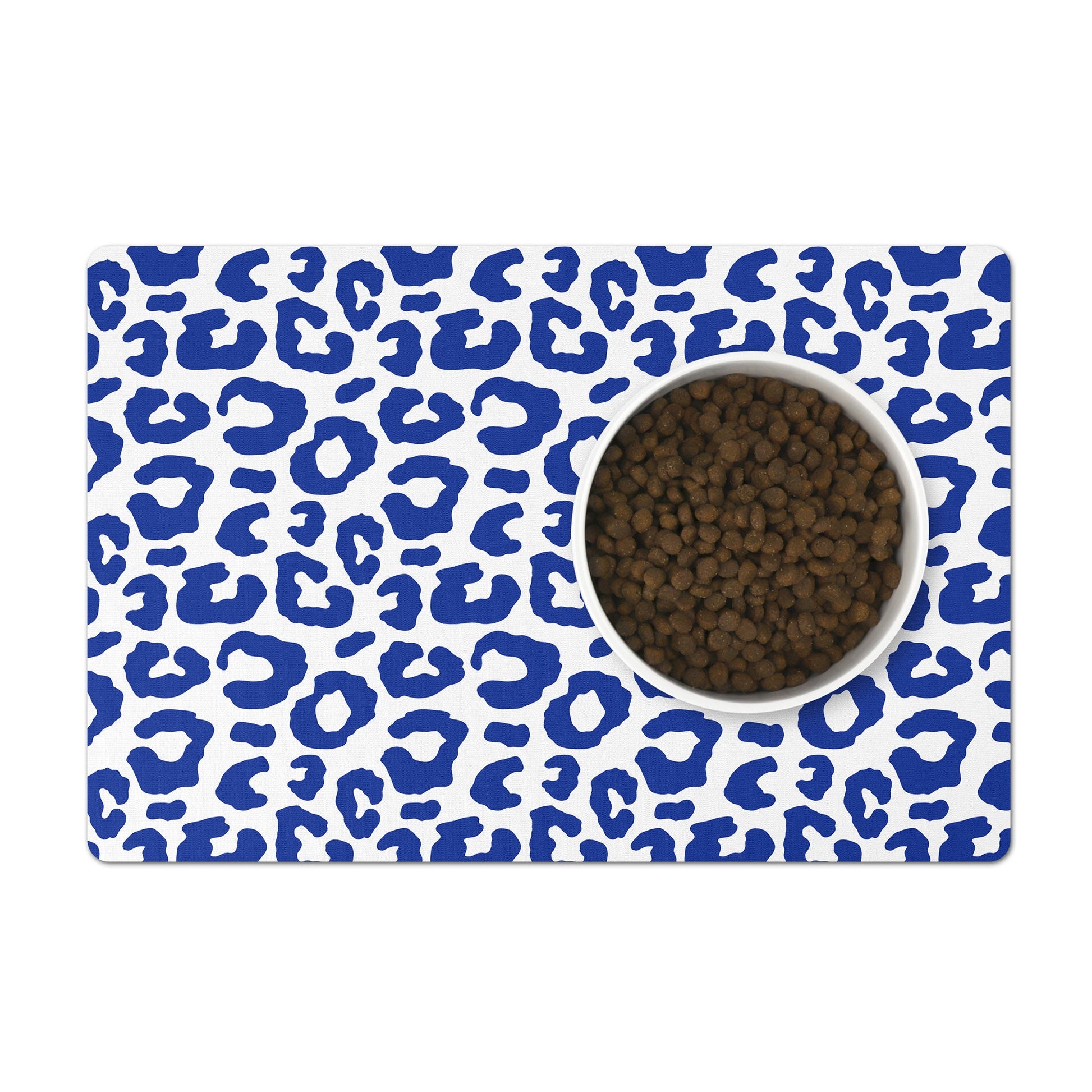 Pet Feeding Mat, Leopard Print, Indigo Navy and White