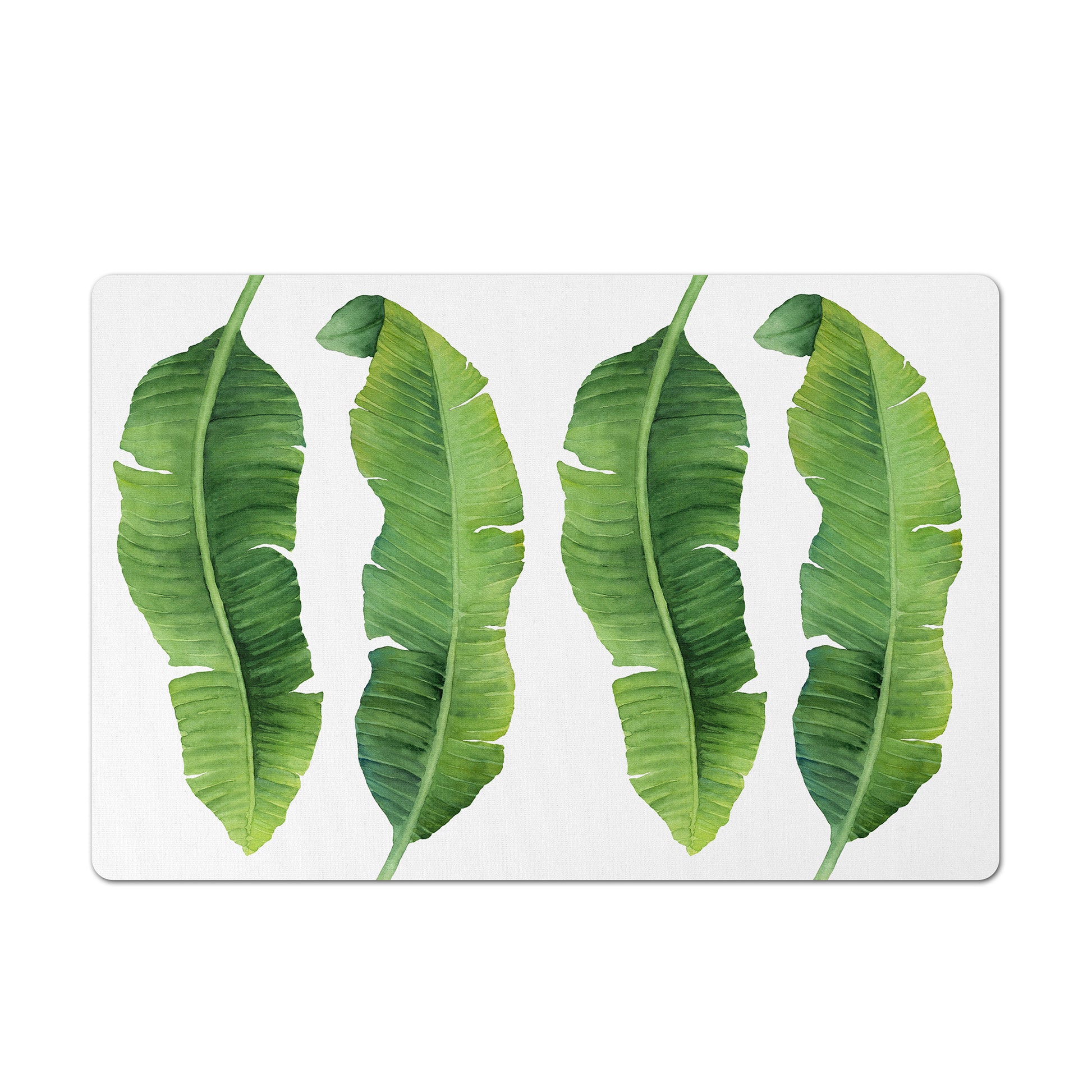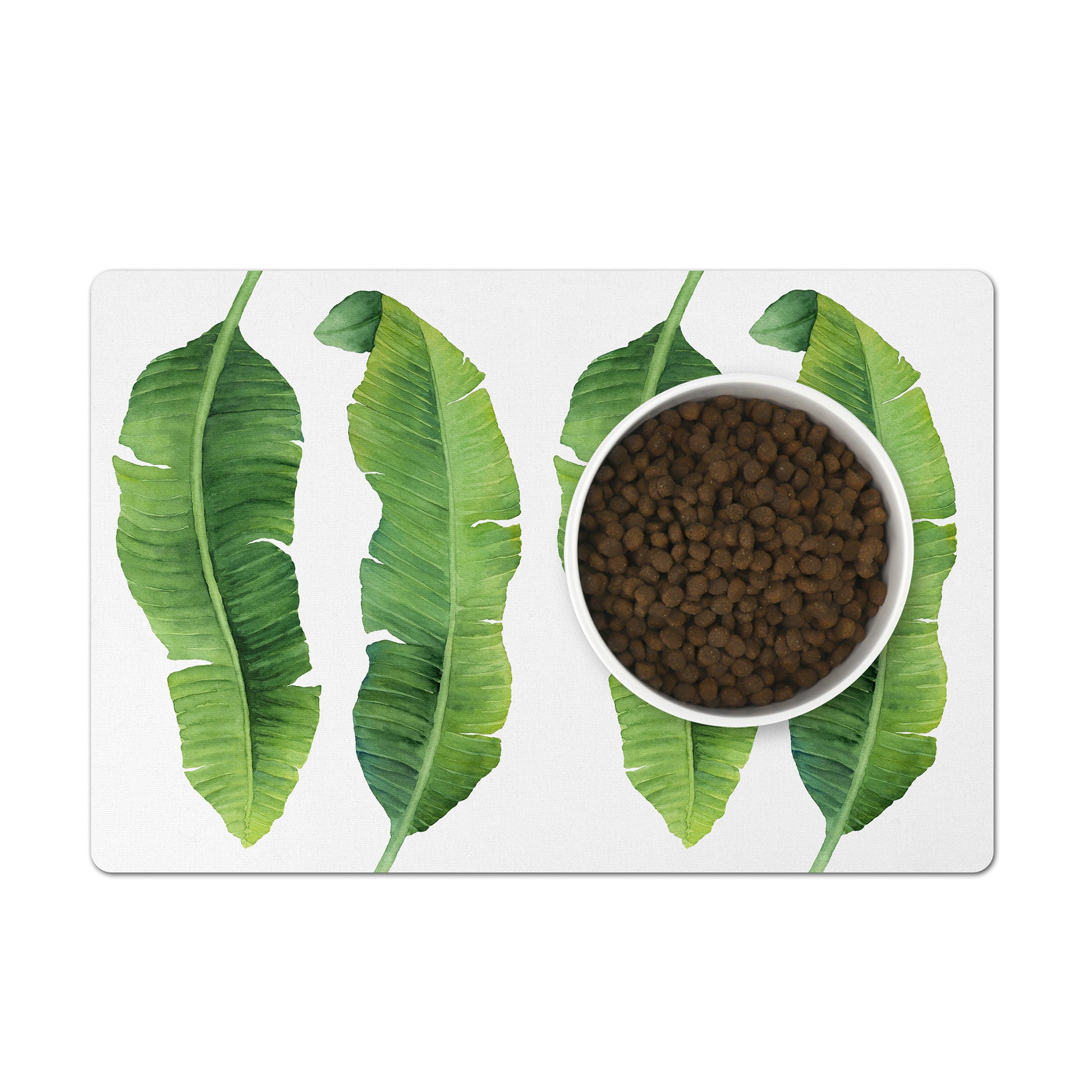 Pet Food Placemat, Green & White, Tropical Banana Leaves, 12" x 18"