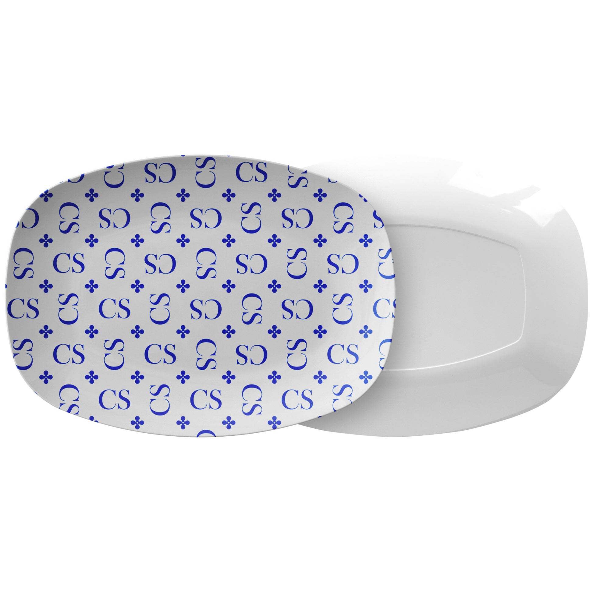 Stylized Monogram Serving Platter, Blue, Personalized Gift, Luxury Plastic