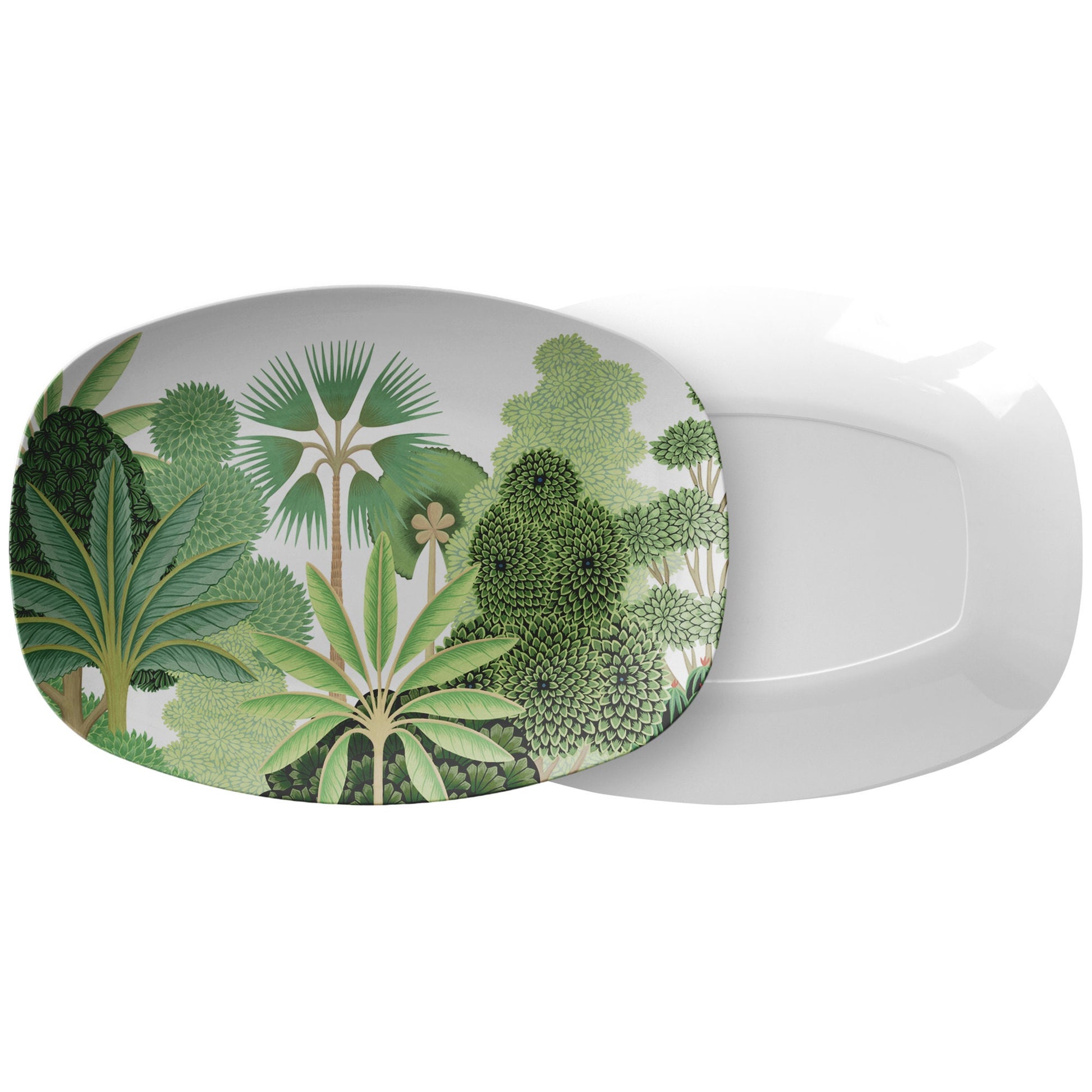 Tropical Serving Platter, Green and White, Mughal Gardens, Luxury Thermosaf Plastic