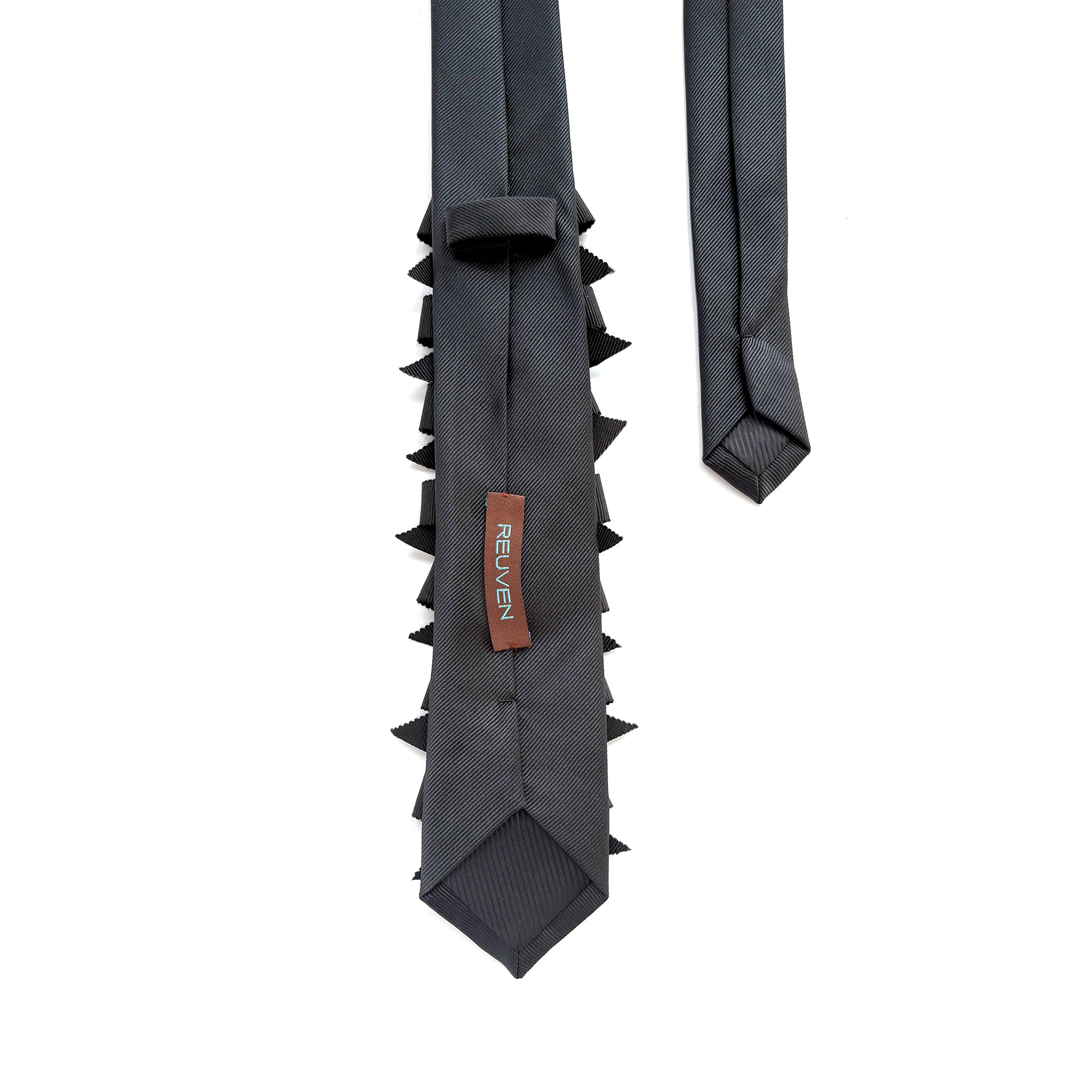 One-of-a-kind upcycled, embellished black skinny necktie - a statement piece that merges classic tailoring with modern, feminine artistry.